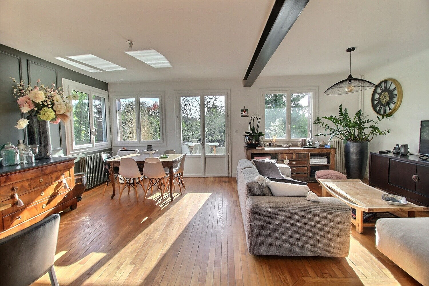 un grand séjour lumineux donnant sur une terrasse plein sud, une cuisine ouverte entièrement aménagée et équipée, quatre chambres et un bureau parfait pour le télétravail.