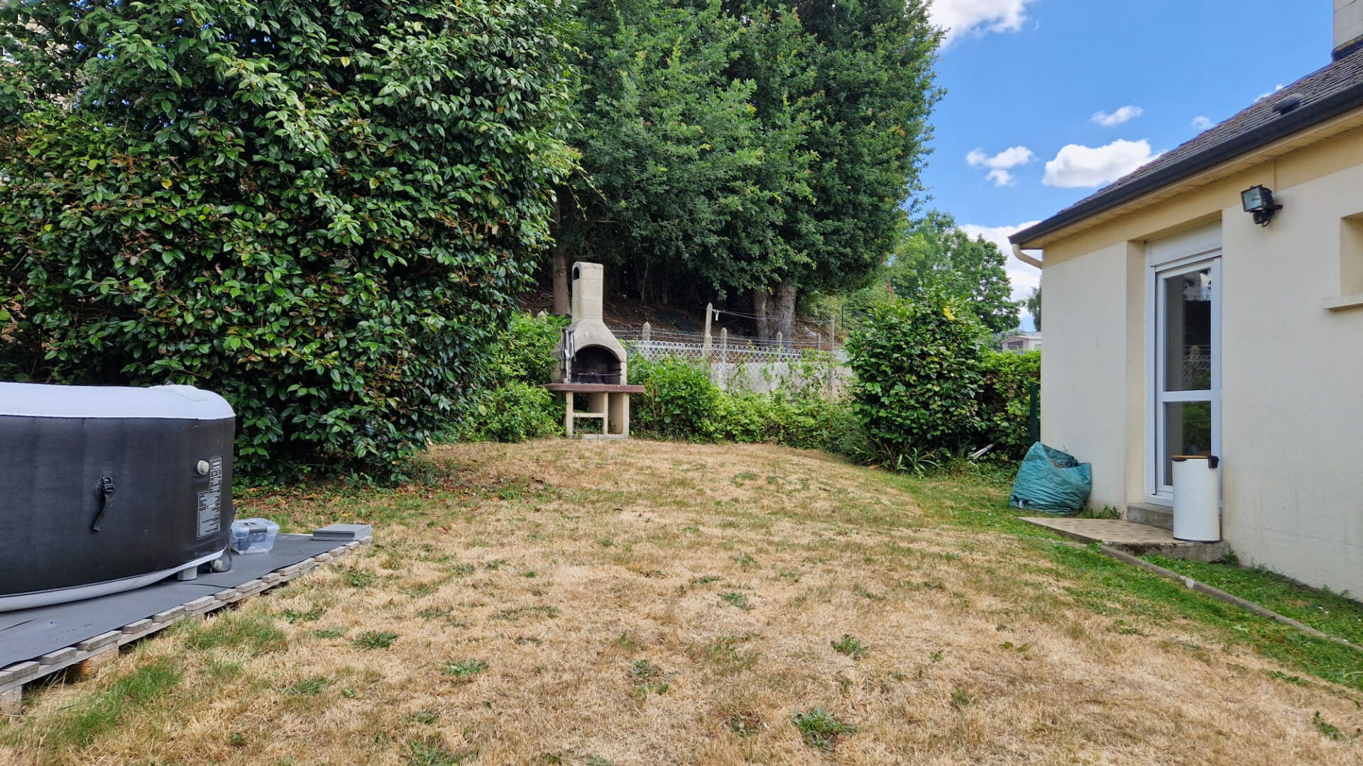 À l'extérieur, le terrain bien exposé offre un cadre agréable pour profiter des beaux jours, avec un barbecue en pierre qui promet de beaux moments conviviaux en plein air.