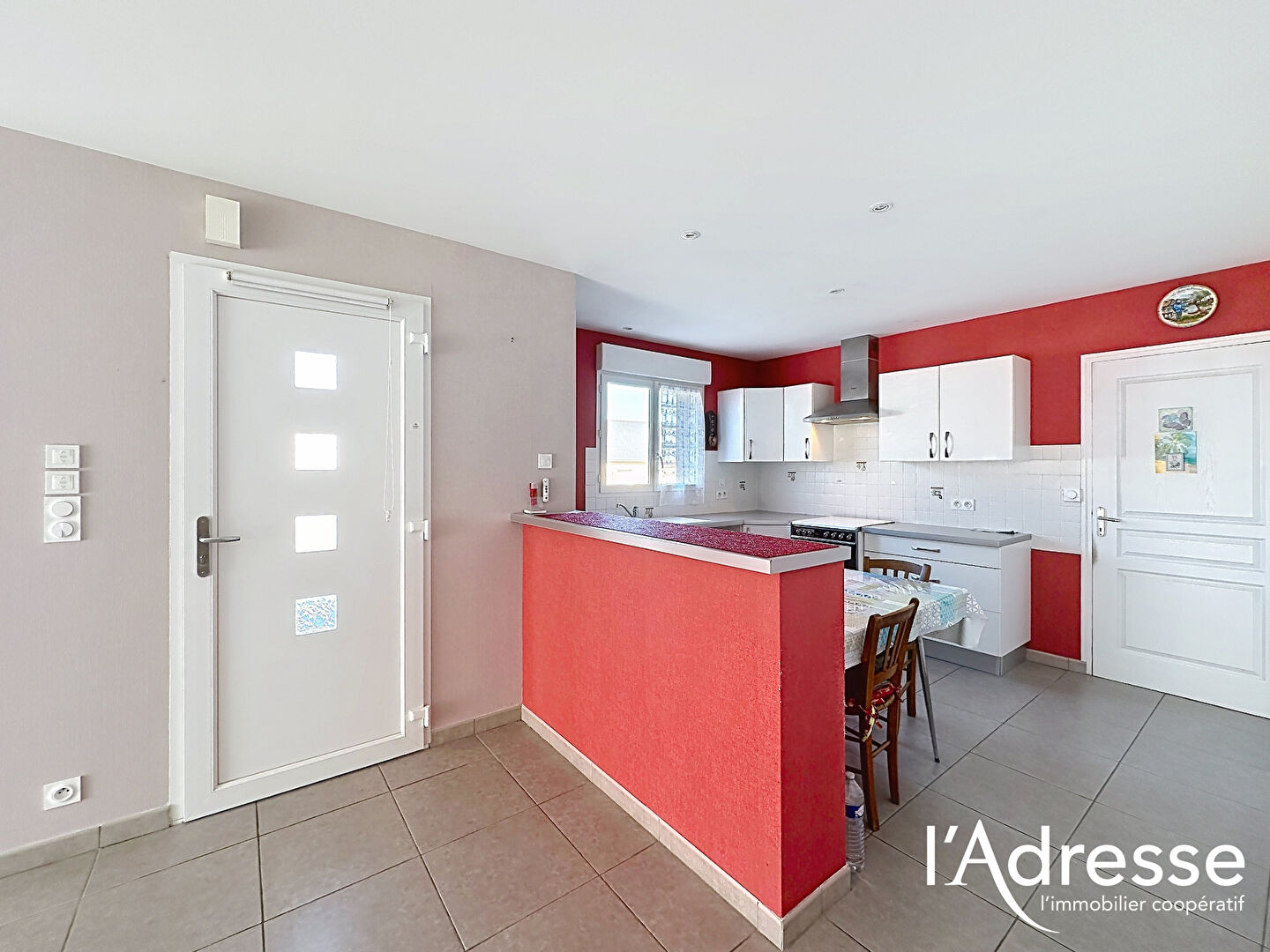 En franchissant la porte d'entrée, vous découvrez une belle pièce de vie lumineuse composée d'un salon-séjour convivial ouvert sur une cuisine aménagée. Cet espace de vie donne un accès direct à une terrasse carrelée d'environ 30 m², idéale pour profiter des beaux jours, ainsi qu'à un terrain entièrement clôturé.