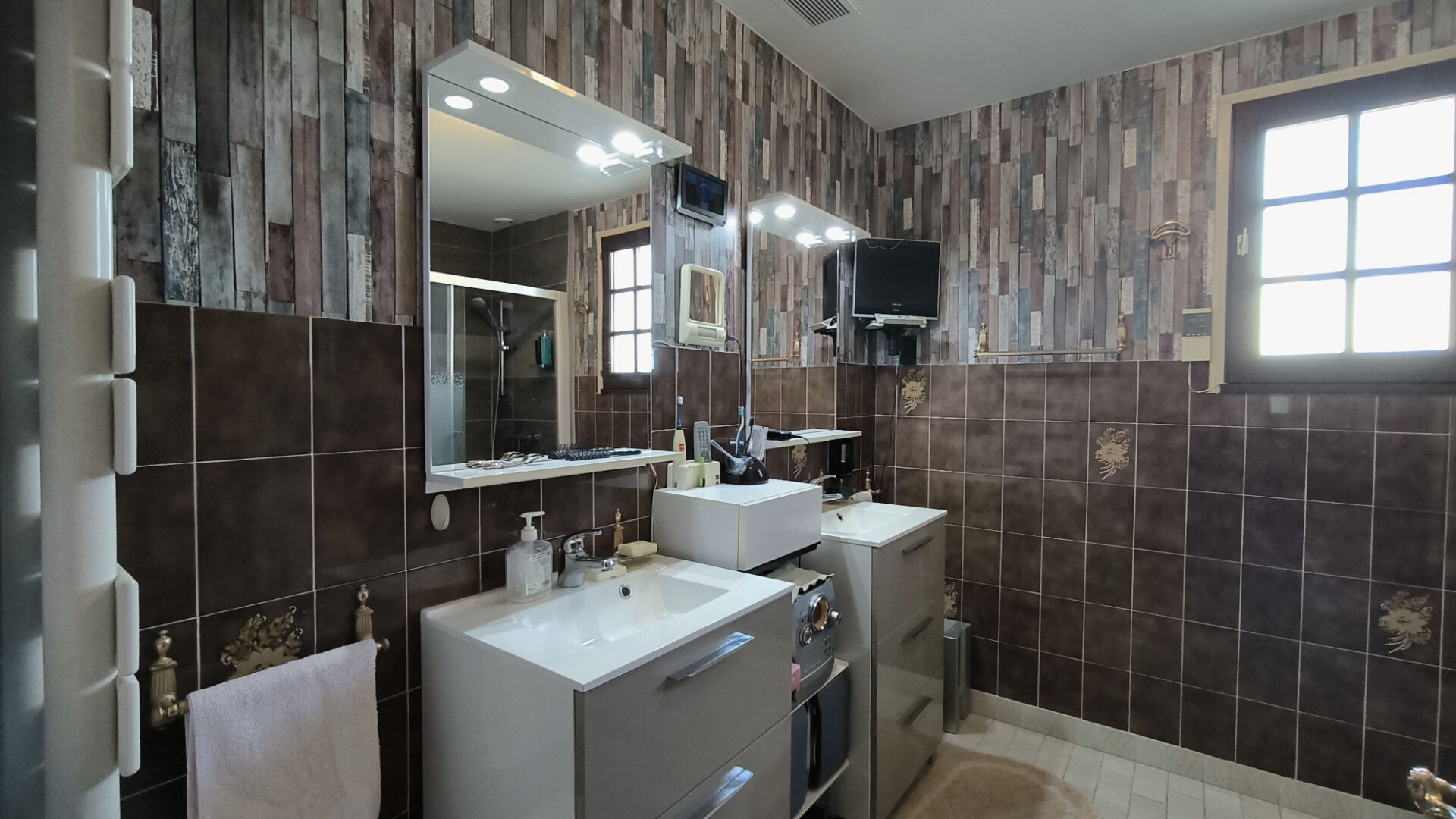D'une entrée/véranda, d'un séjour , d'une  cuisine aménagée et équipée,  de 3 chambres, d'un salle de douche à l'italienne, un WC séparé, d'une lingerie/buanderie, d'un premier garage, d'une seconde véranda et d'une terrasse, le tout sur une parcelle de terrain d'environ 1300m² (dont une partie est constructible).