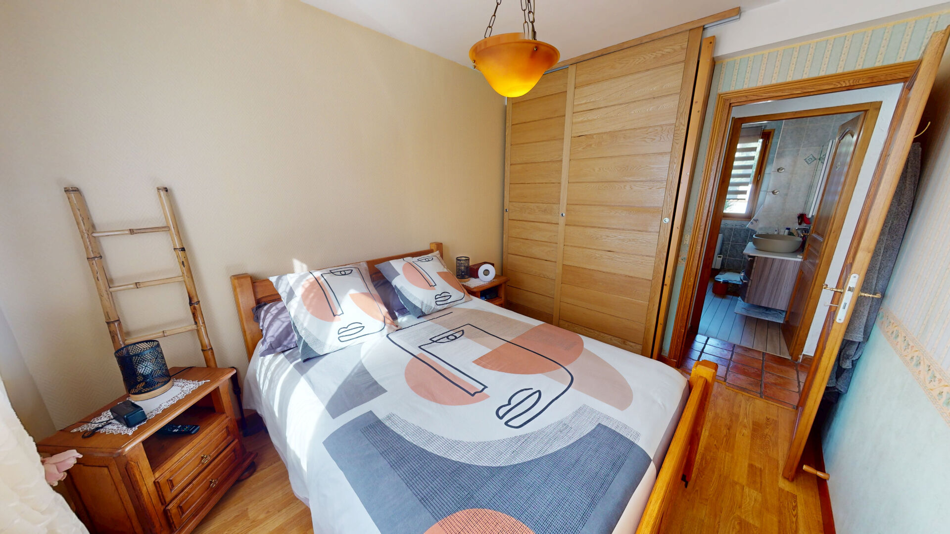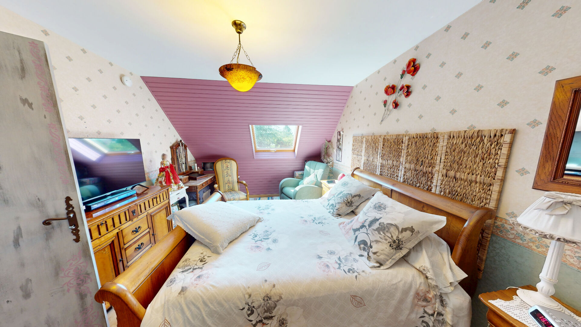À l'étage, on trouve deux chambres, un bureau et un palier.