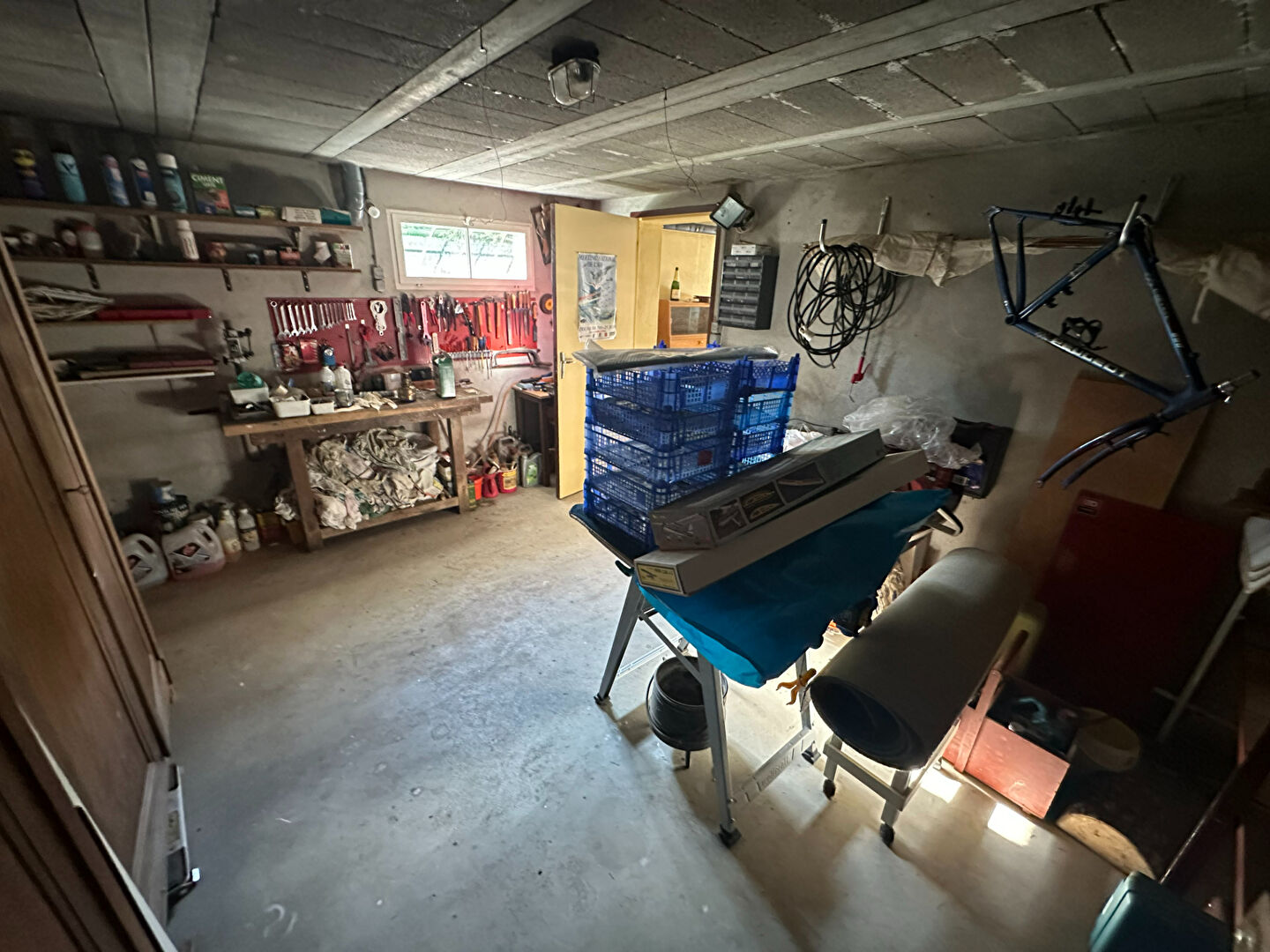 Le sous-sol total de 130 m² est un véritable atout : il comprend une cave, une chaufferie, un atelier, une grande pièce de rangement, une salle de bains avec toilettes, ainsi qu'un garage avec porte motorisée.
