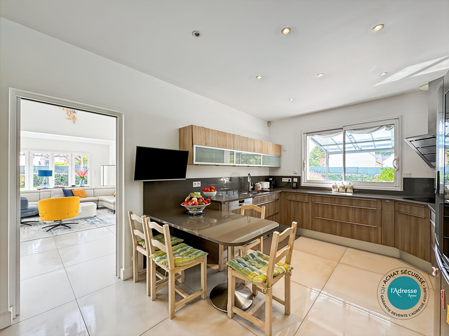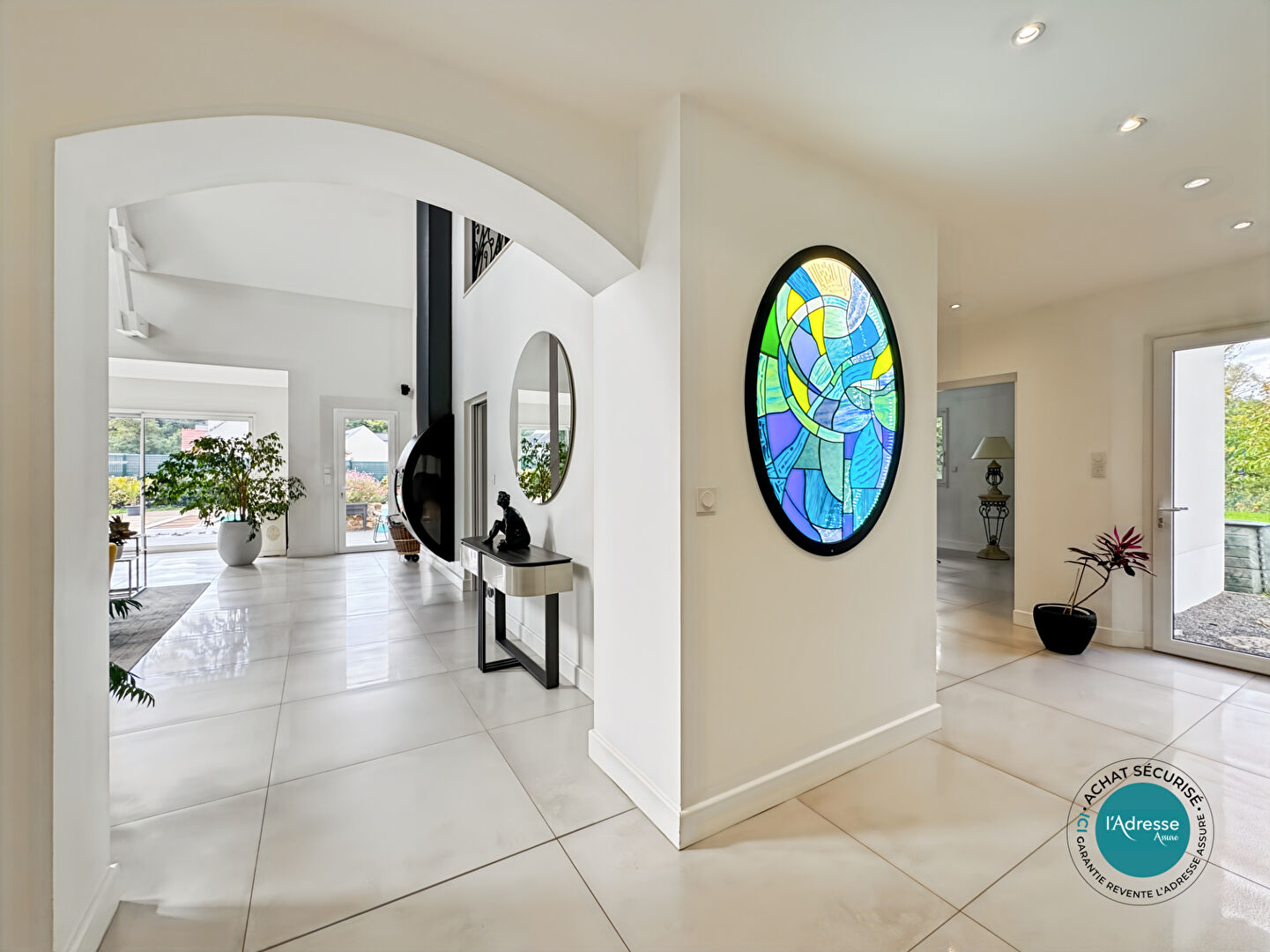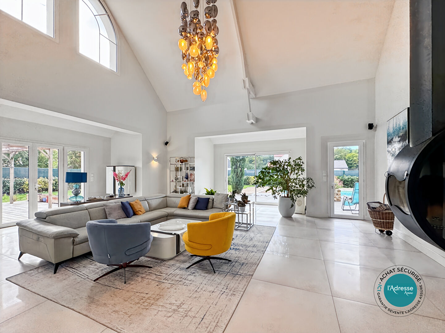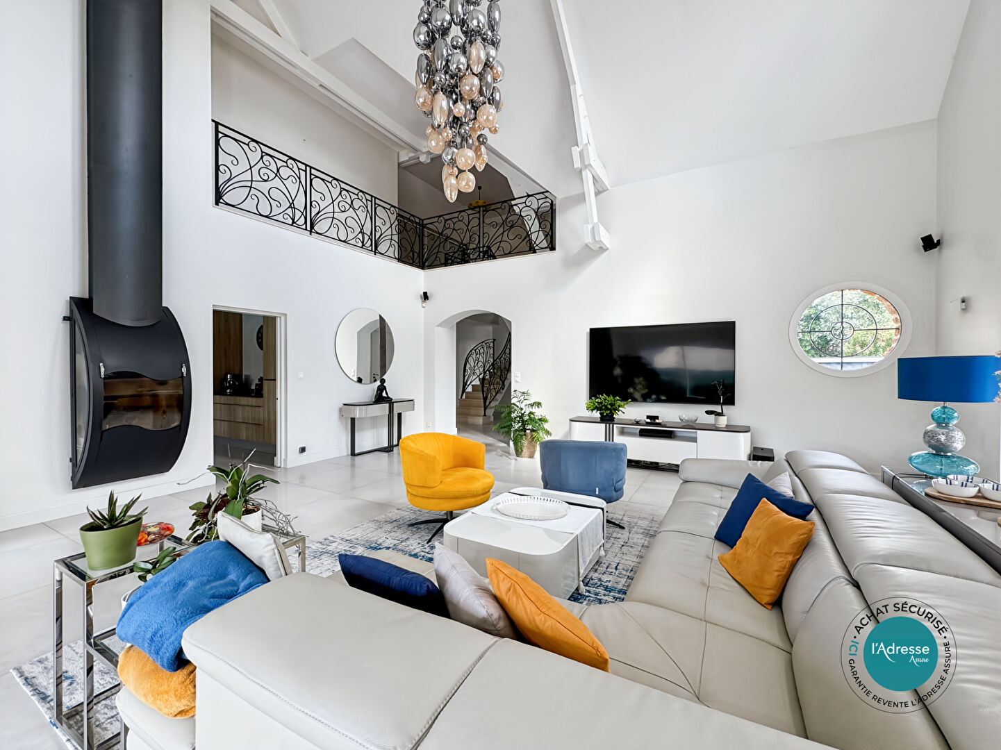Splendide maison de 270 m² offrant au rez-de-chaussée : hall d'entrée avec rangements, un magnifique escalier en voute sarrasine, un séjour cathédrale de 73 m², cheminée suspendue, une cuisine aménagée et équipée, une salle à manger avec accès direct sur la terrasse.