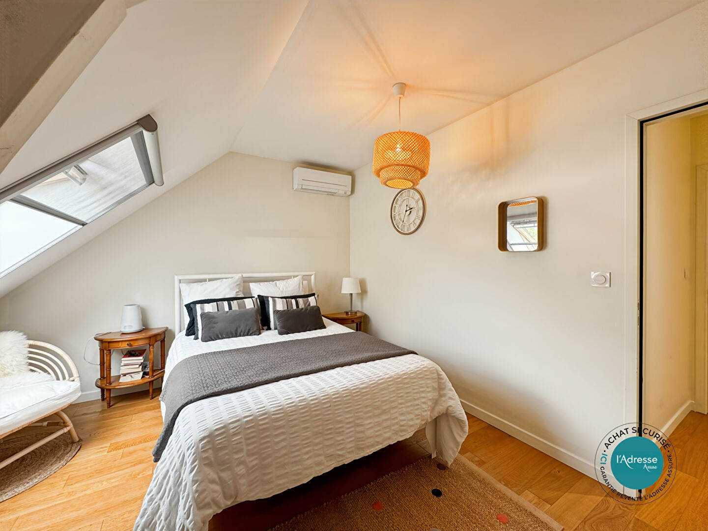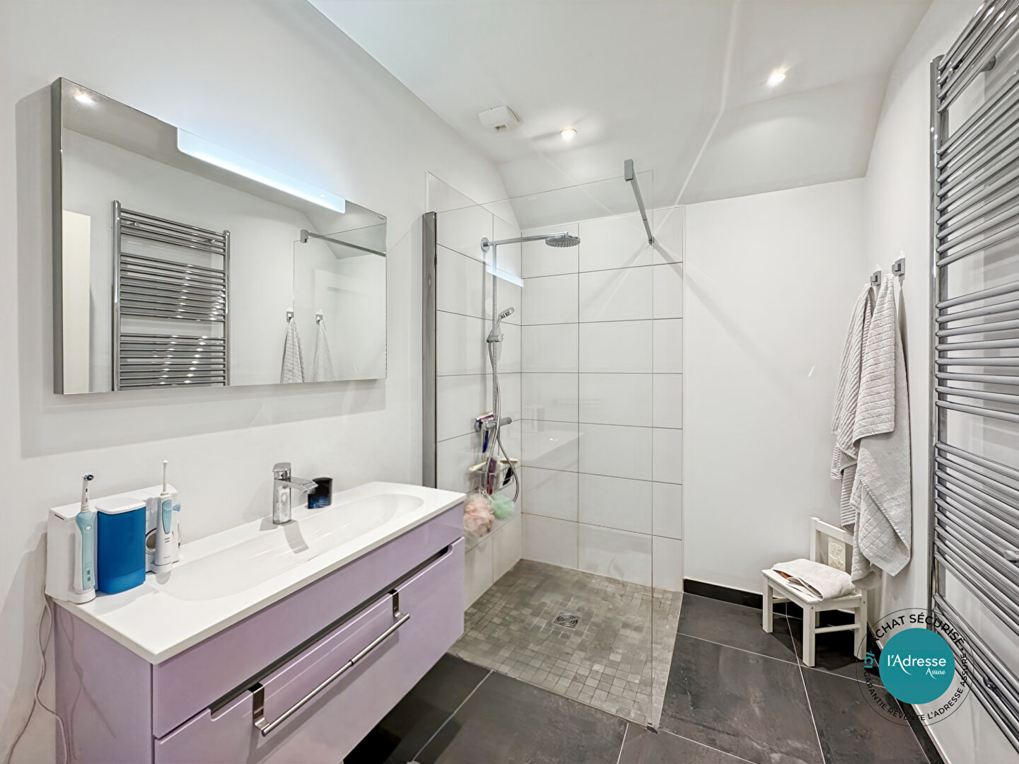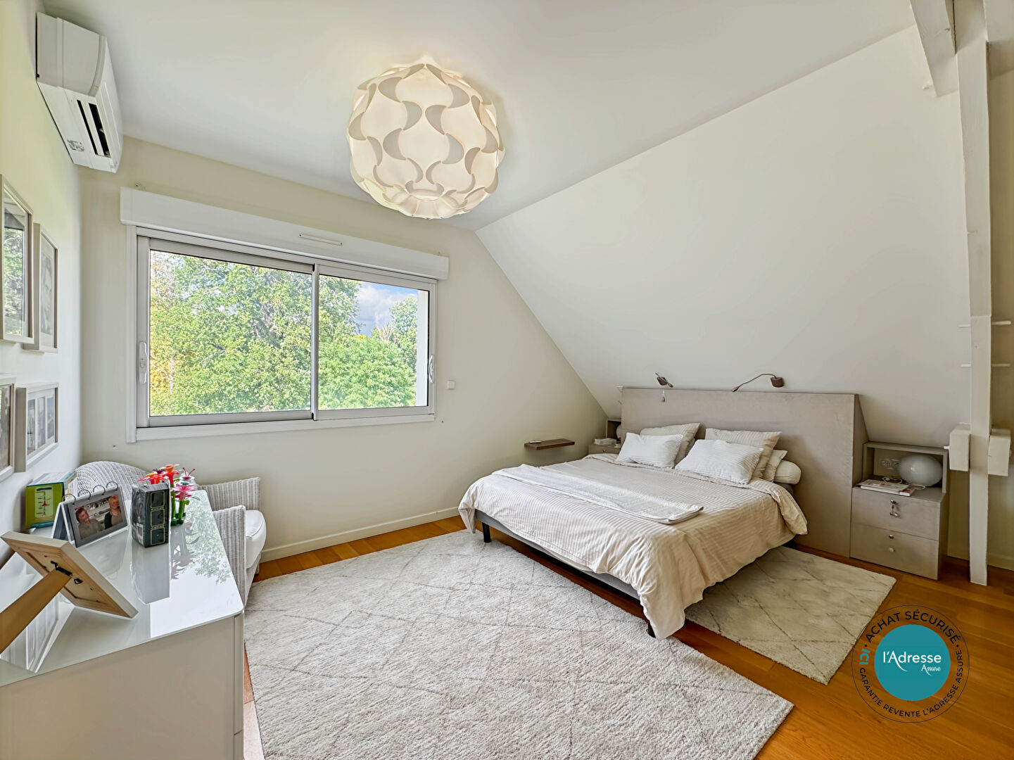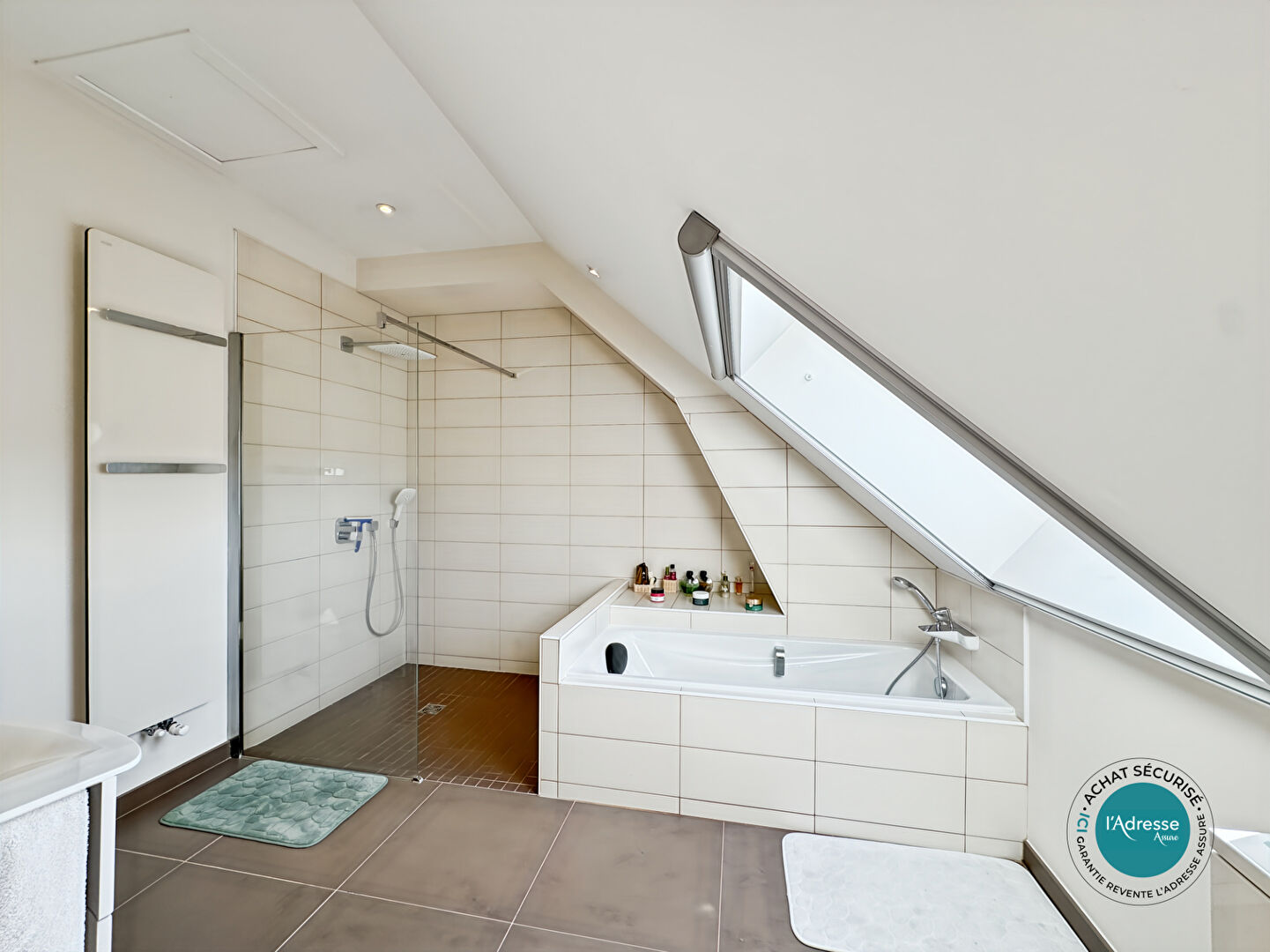 A l'étage, un grand palier pouvant faire office de salle de jeux avec placards desservant deux chambres, une salle d'eau et un WC, ainsi qu'une suite parentale de 42 m² avec salle de bains avec douche et baignoire, WC japonnais privatif.