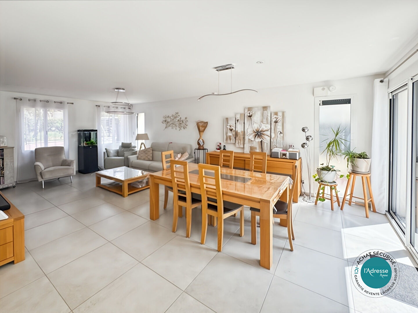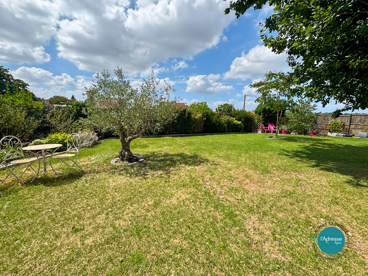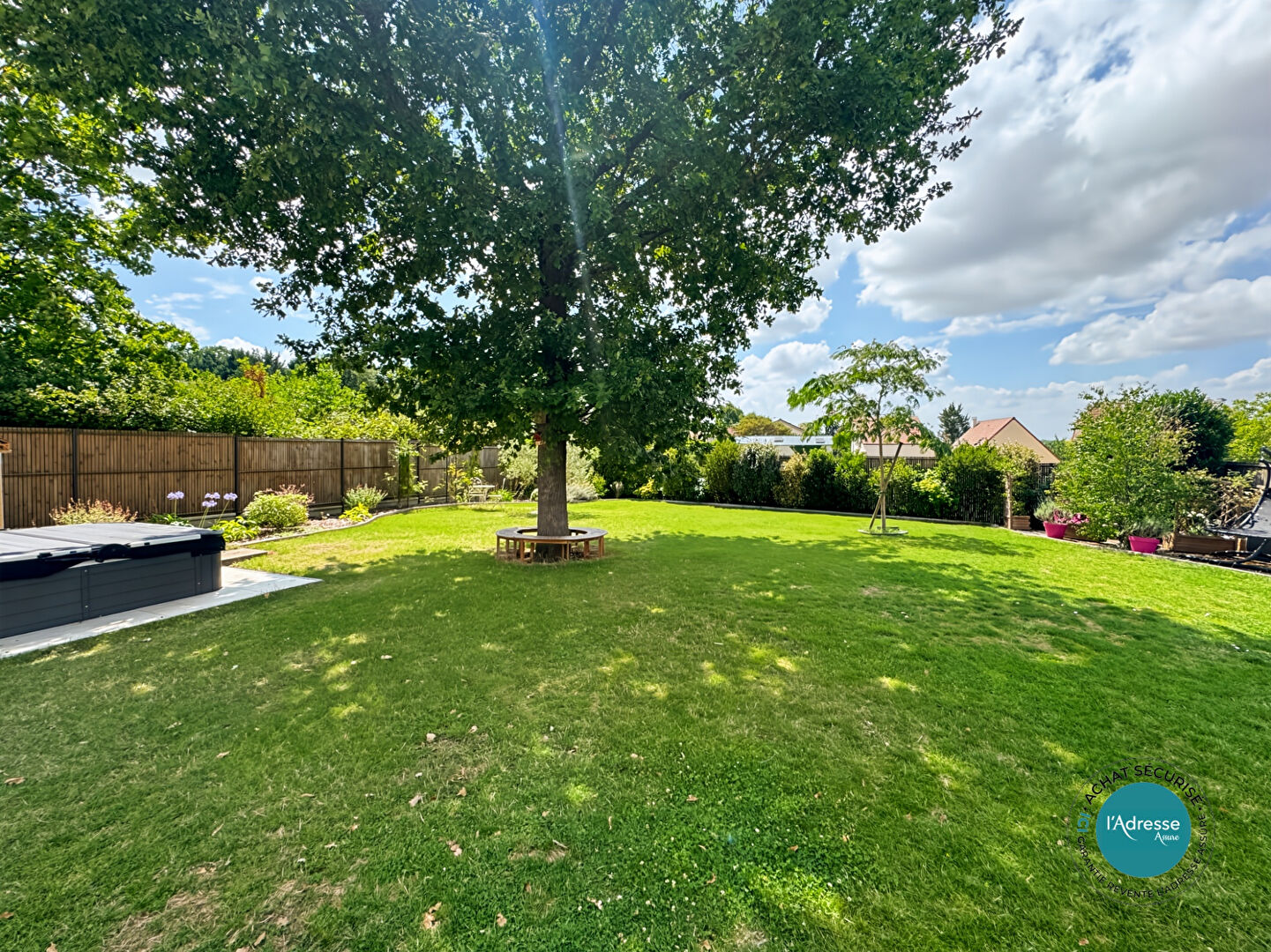 Cette belle maison familiale offre une entrée avec rangements, une cuisine moderne aménagée équipée, ouverte sur une pièce de vie très lumineuse, incluant salon et séjour, avec accès direct à un magnifique jardin clos de 909 m².