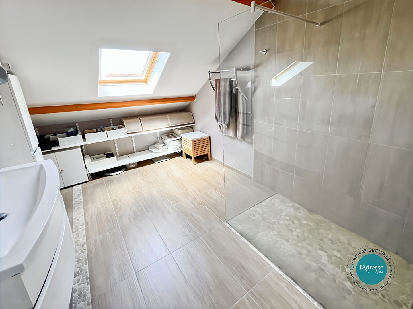 À l'étage, vous découvrirez deux autres chambres, un bureau, une suite parentale avec une spacieuse salle d'eau à l'italienne, un WC indépendant, un dressing et une salle de bains, offrant à chacun son propre espace.