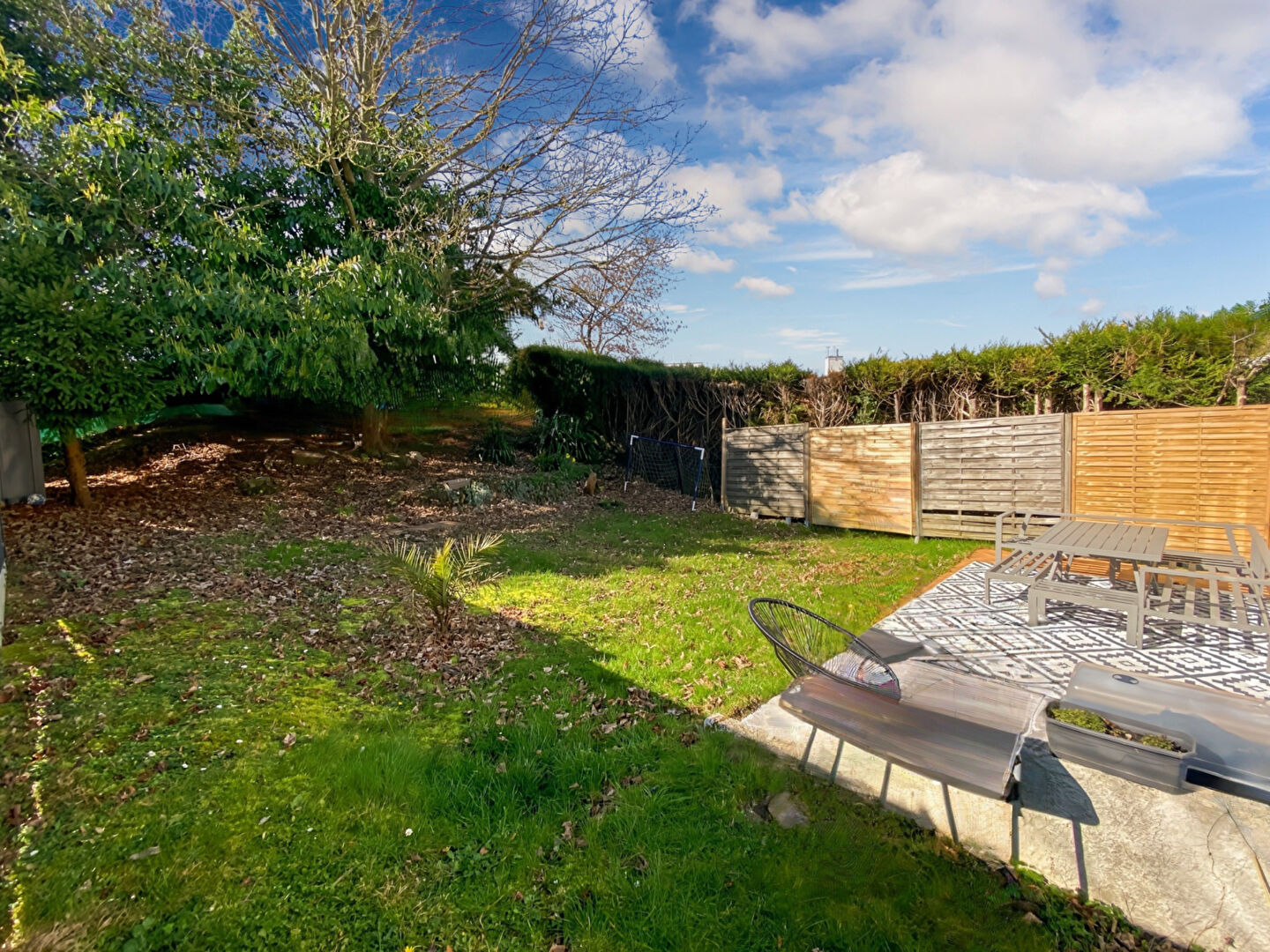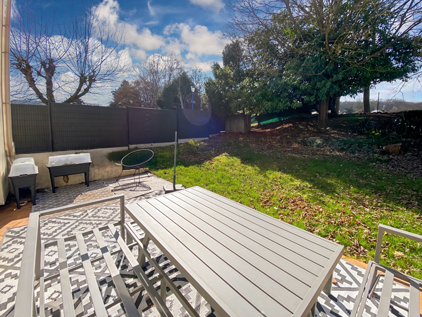 À l'extérieur, profitez d'un jardin sans vis-à-vis orienté plein sud, à l'avant comme à l'arrière, parfait pour les moments de détente en famille ou entre amis.