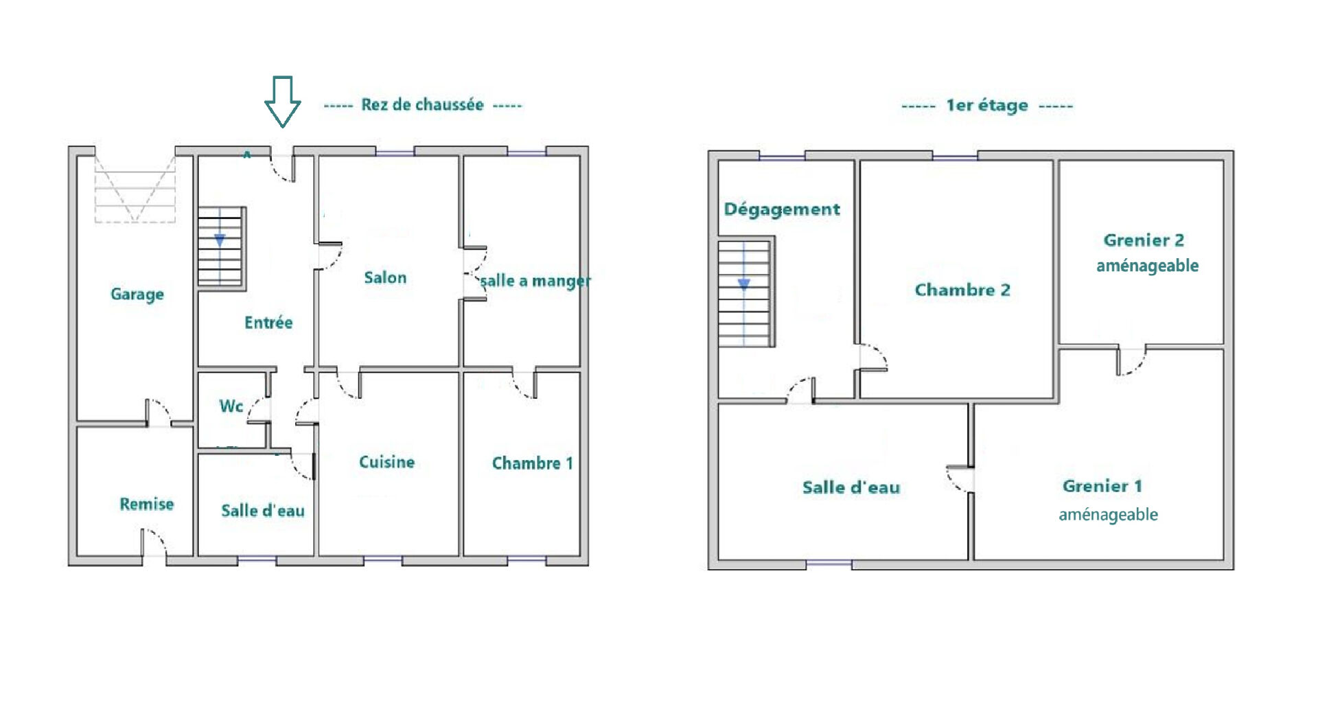 Sur une parcelle de 334 m2, la maison se compose au rez-de-chaussée d'une entrée, un double salon séjour avec cheminée, une cuisine indépendant avec accès direct sur la terrasse et le jardin arboré, une première chambre, une salle d'eau, wc.