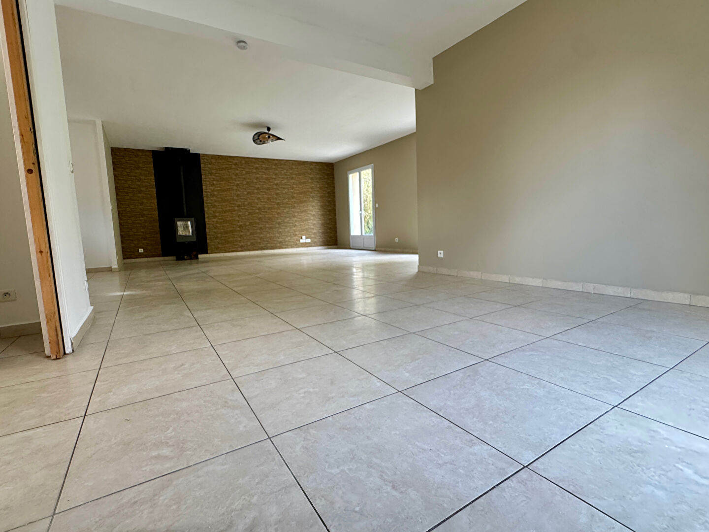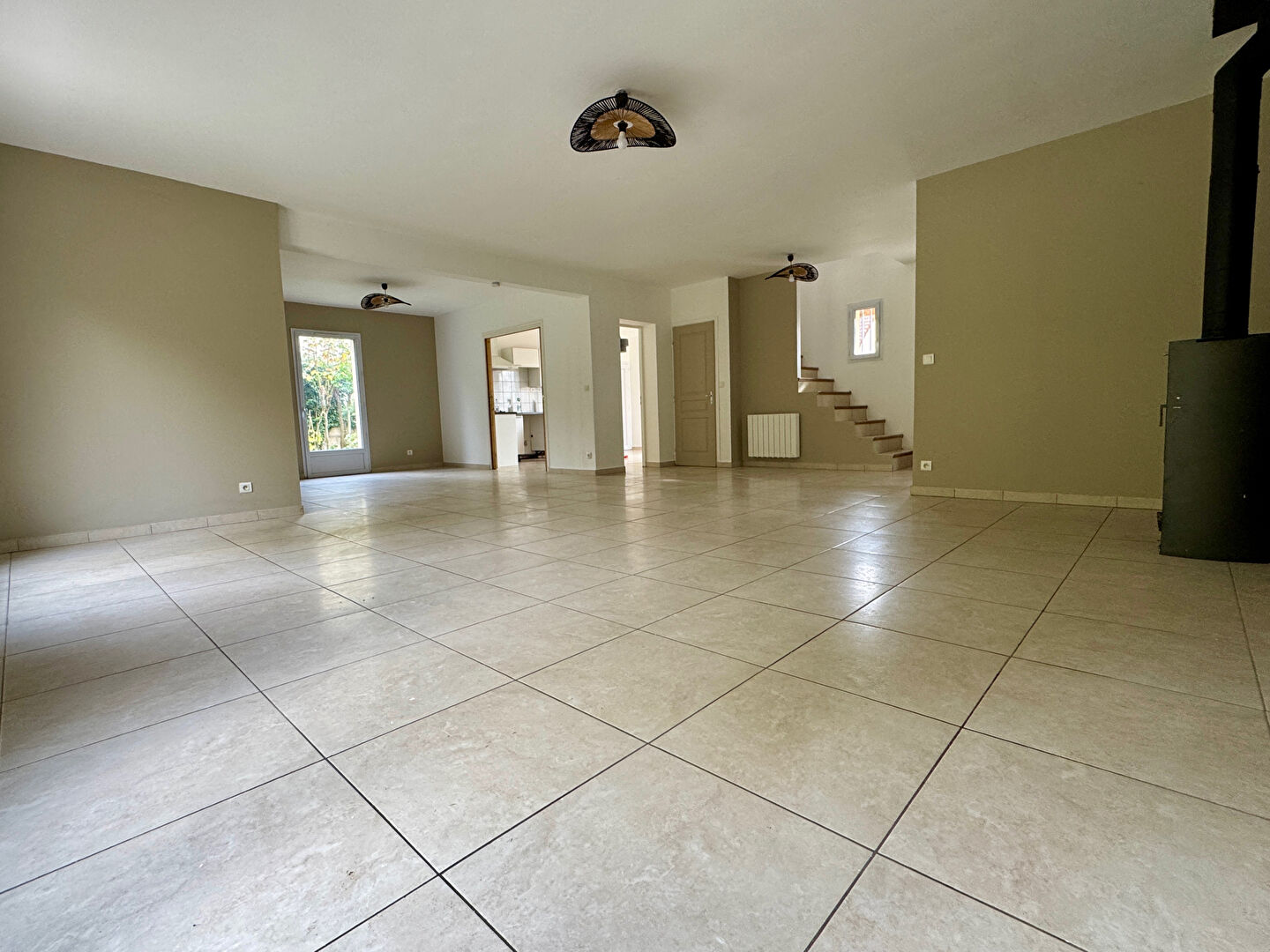 Pavillon au calme situé dans un environnement résidentiel recherché, comprenant au rez-de-chaussée : une entrée ouvrant sur un grand séjour triple lumineux avec poêle à bois, une cuisine indépendante et un WC.