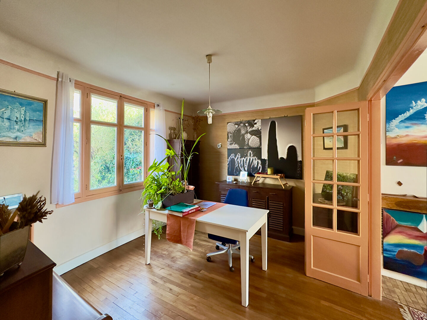 Au rez-de-chaussée, l'entrée avec vestibule introduit dans un bureau accueillant, suivi d'un double séjour de 33 m² traversant, exposé est-ouest, doté d'une cheminée, créant ainsi un espace de vie chaleureux. Une cuisine dinatoire indépendante, une chambre, et une salle d'eau équipée d'une douche à l'italienne ajoutent des fonctionnalités appréciables à ce niveau. Une véranda s'ouvrant sur le jardin offre une transition agréable entre l'intérieur et l'extérieur.