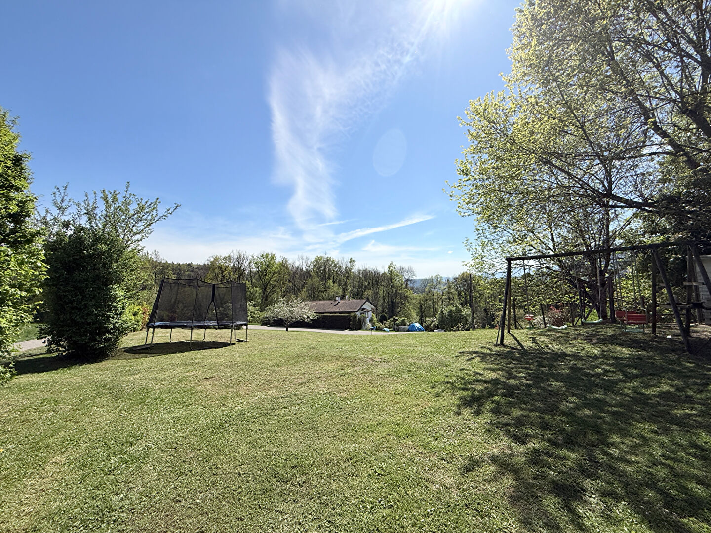 Les annexes enrichissent considérablement le quotidien : deux garages, une cave, une buanderie, un balcon et une très belle terrasse pour profiter pleinement du cadre extérieur. Le grand terrain attenant ouvre toutes les possibilités : jardin d'agrément, potager, espace de jeux pour les enfants.