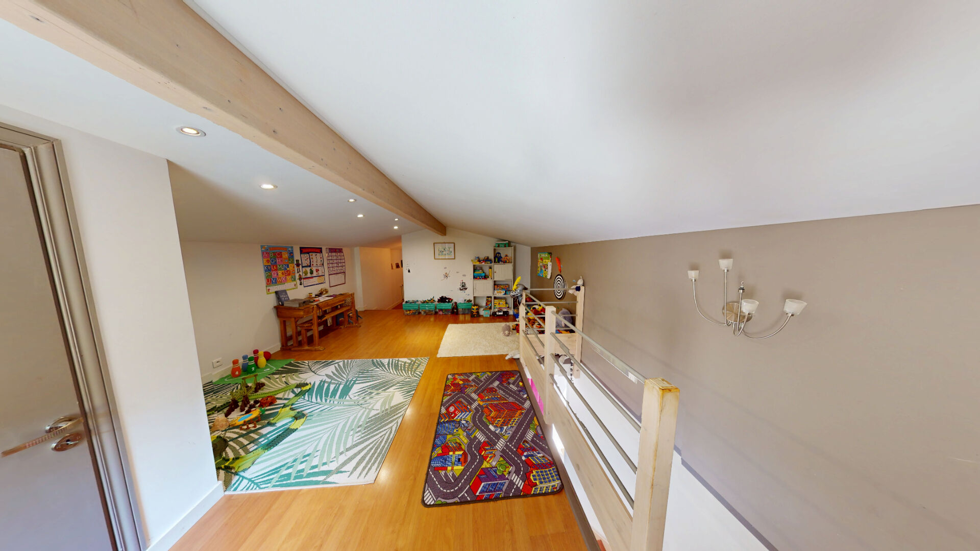 À l'étage, vous trouverez une mezzanine pouvant servir d'espace bureau ou détente, deux chambres supplémentaires et une salle d'eau avec WC.