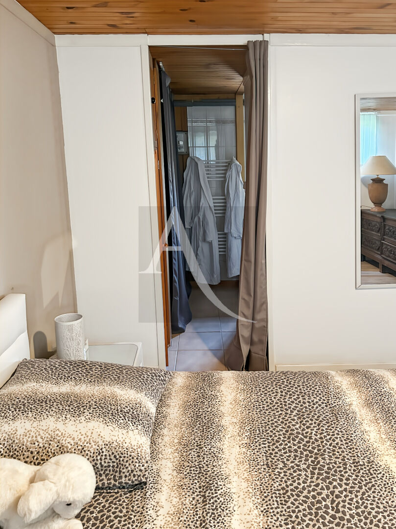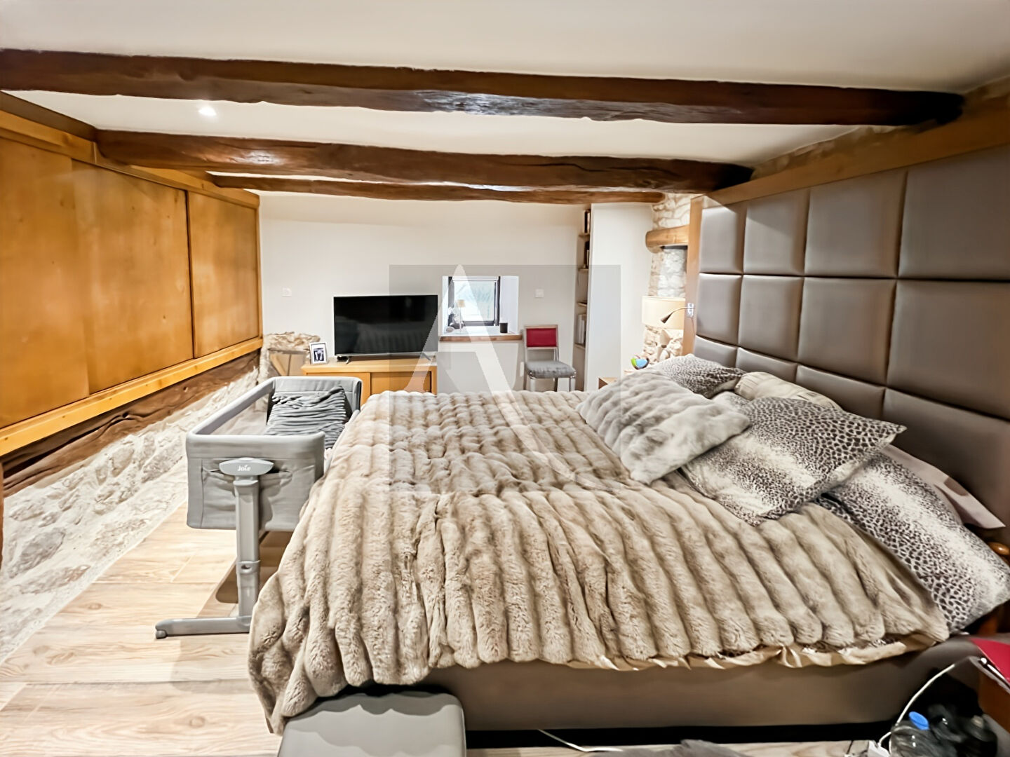 Sa cuisine entièrement équipée s'intègre parfaitement à une grande pièce de vie agrémentée d'un poêle à bois encastré, offrant un cadre convivial pour partager des moments précieux. Avec ses deux chambres et sa salle d'eau fonctionnelle, elle garantit un quotidien confortable grâce notamment à la climatisation réversible installée.
