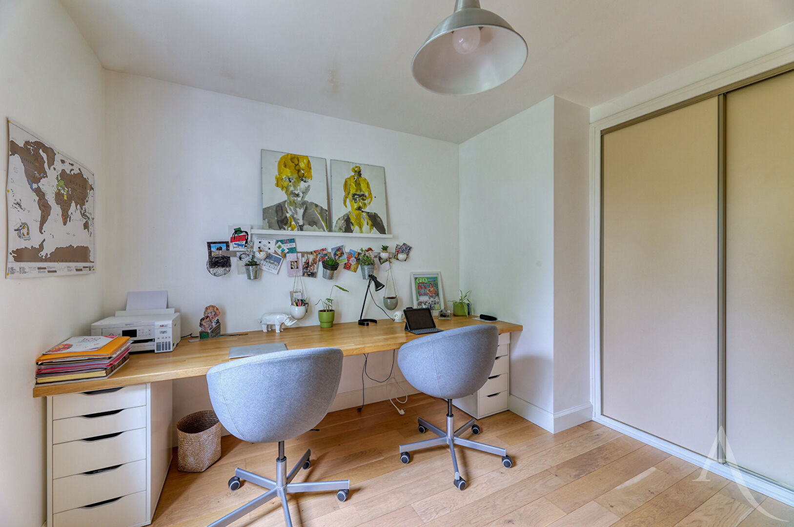 - au rez-de-chaussée : d'un hall d'entrée, d'une cuisine aménagée et équipée, d'une pièce de vie lumineuse avec une belle hauteur sous plafond et accès au jardin, 3 chambres sur parquet dont une avec sa salle d'eau, une 2nde salle d'eau avec douche à l'italienne et un WC.