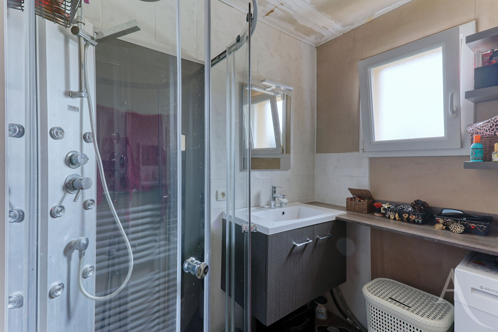 La partie nuit, accessible par un couloir, comprend deux chambres spacieuses sur parquet flottant, un WC indépendant et une salle d'eau récente avec douche d'angle.