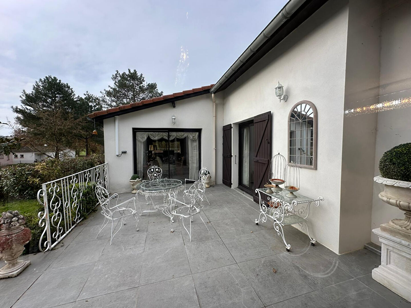À l'extérieur, vous profiterez d'un magnifique jardin paysagé, d'une grande terrasse de 60 m², idéale pour les repas en plein air, et d'un cadre naturel privilégié.
