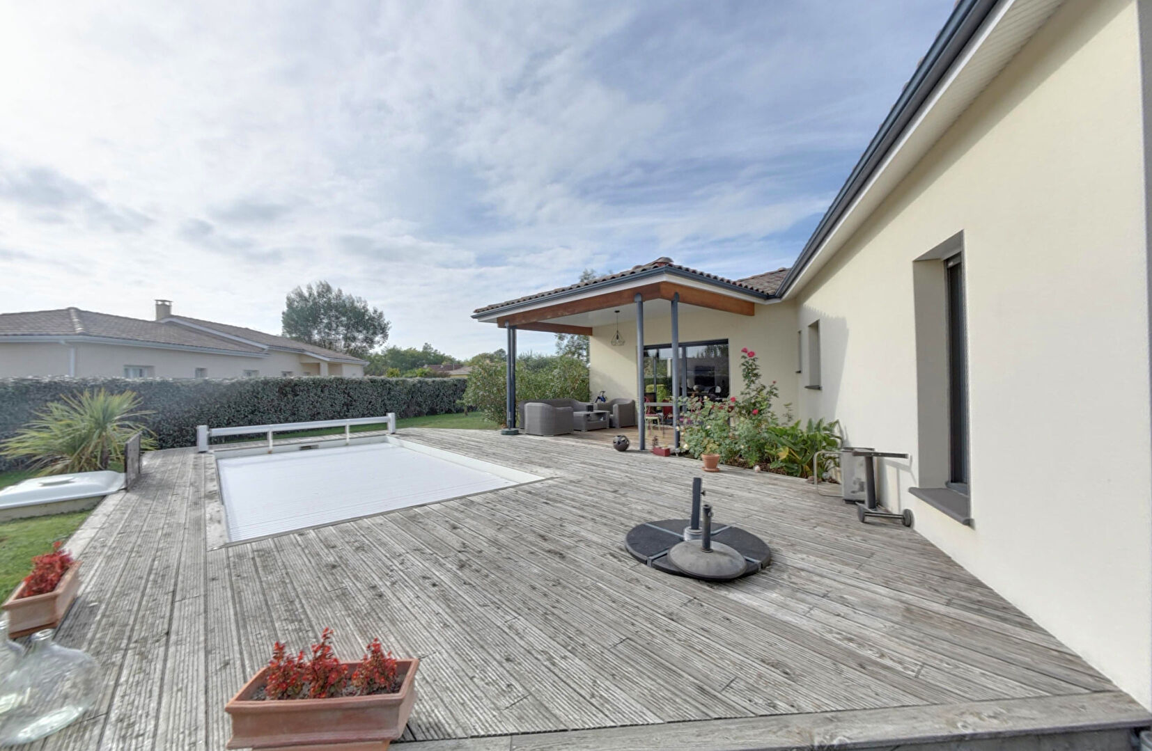 - sa piscine dans le prolongement de la terrasse couverte