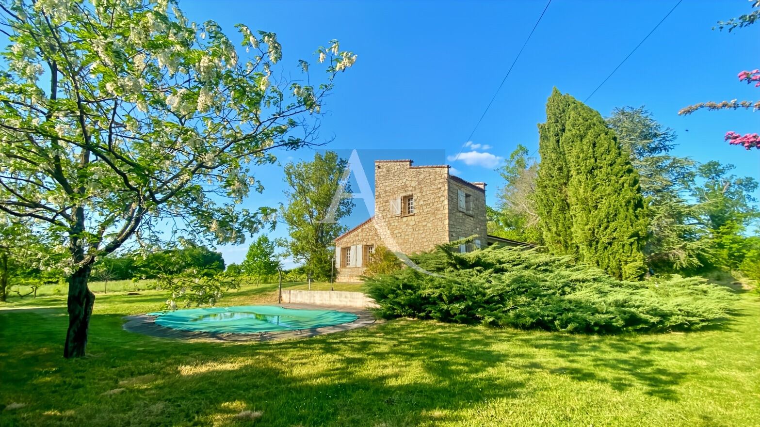 Terrain : 5696 m2 avec une vue superbe en campagne, une piscine , un puits.