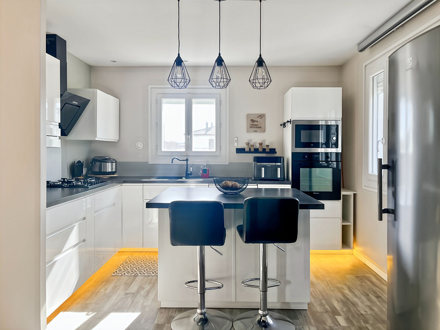 Dès l'entrée, vous serez séduit par un salon et un séjour lumineux, ouverts sur une cuisine aménagée idéale pour vos repas .