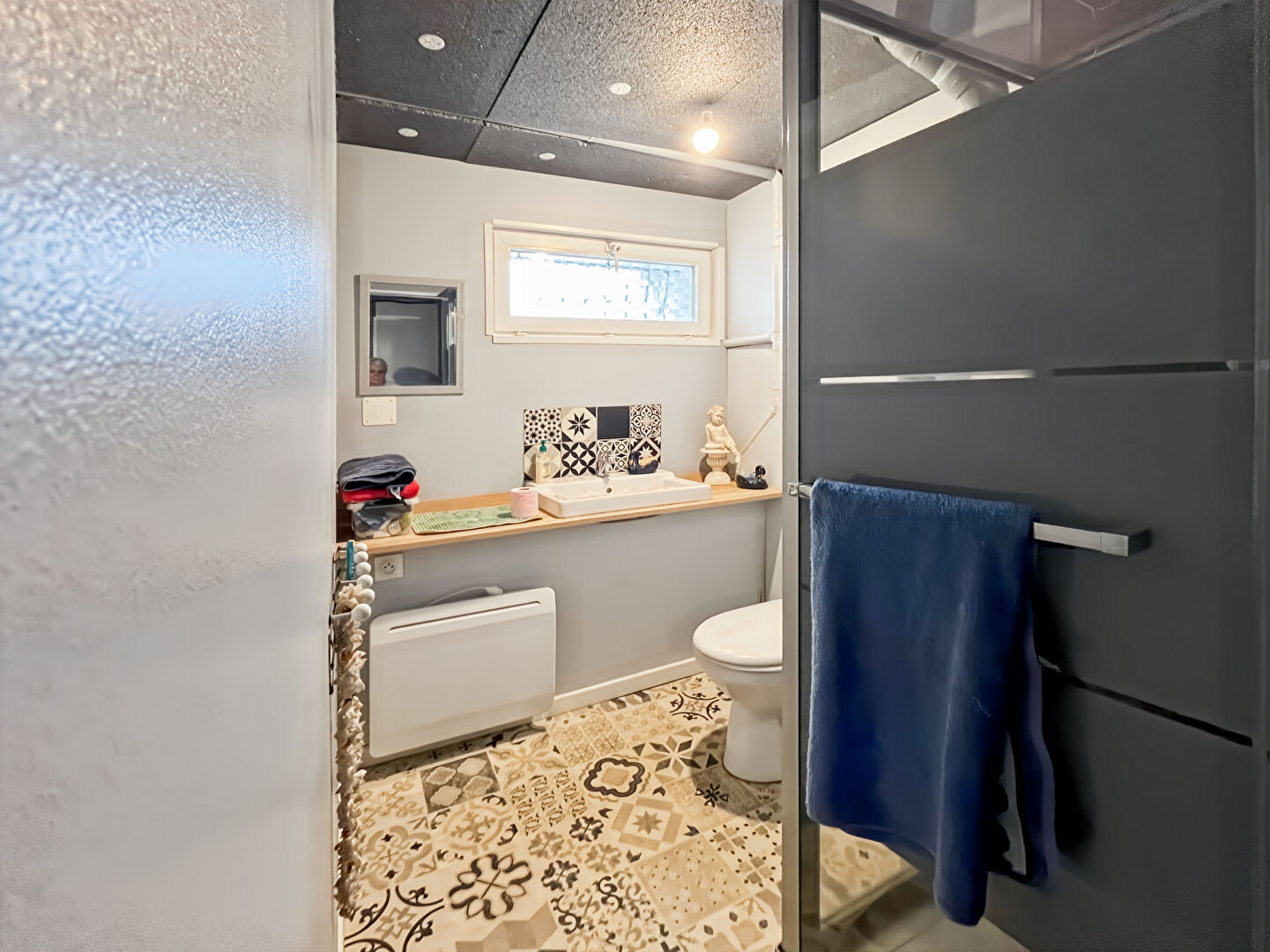 Deux chambres, une salle d'eau et un WC séparé complètent l'espace de vie principal.
