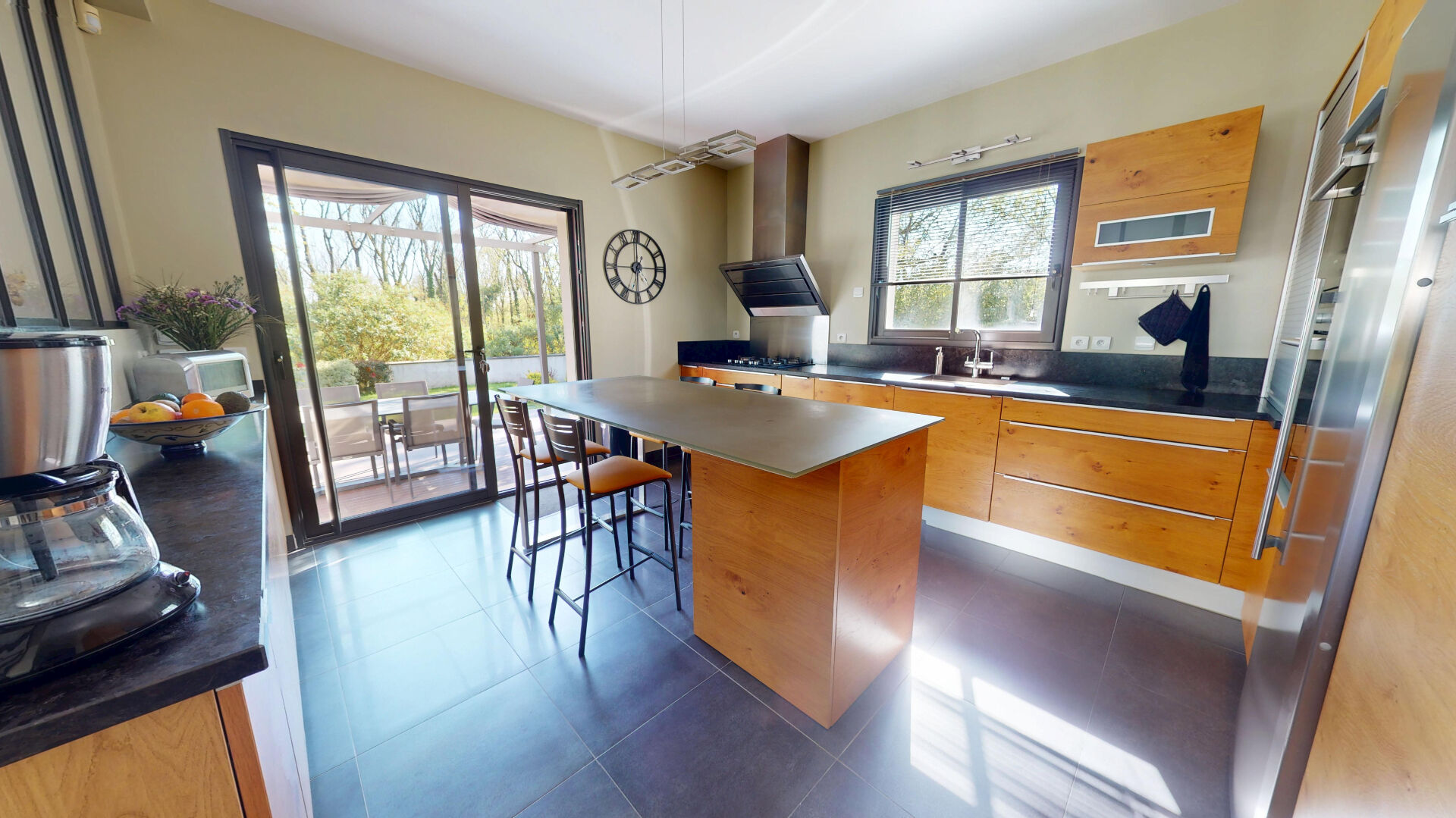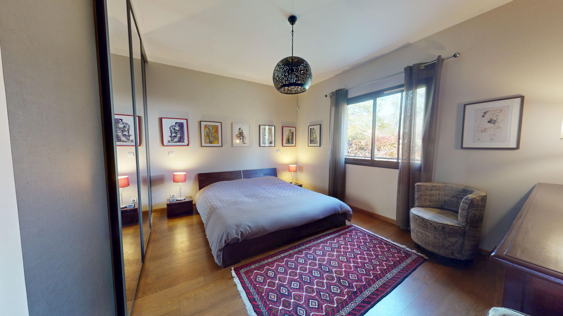 L'intérieur propose un double séjour lumineux, une cuisine haut de gamme entièrement équipée, 5 chambres dont une suite parentale avec dressing, 3 salles de bain, 4 WC, un bureau, une mezzanine, celliers, une vaste buanderie et un espace vestiaire.