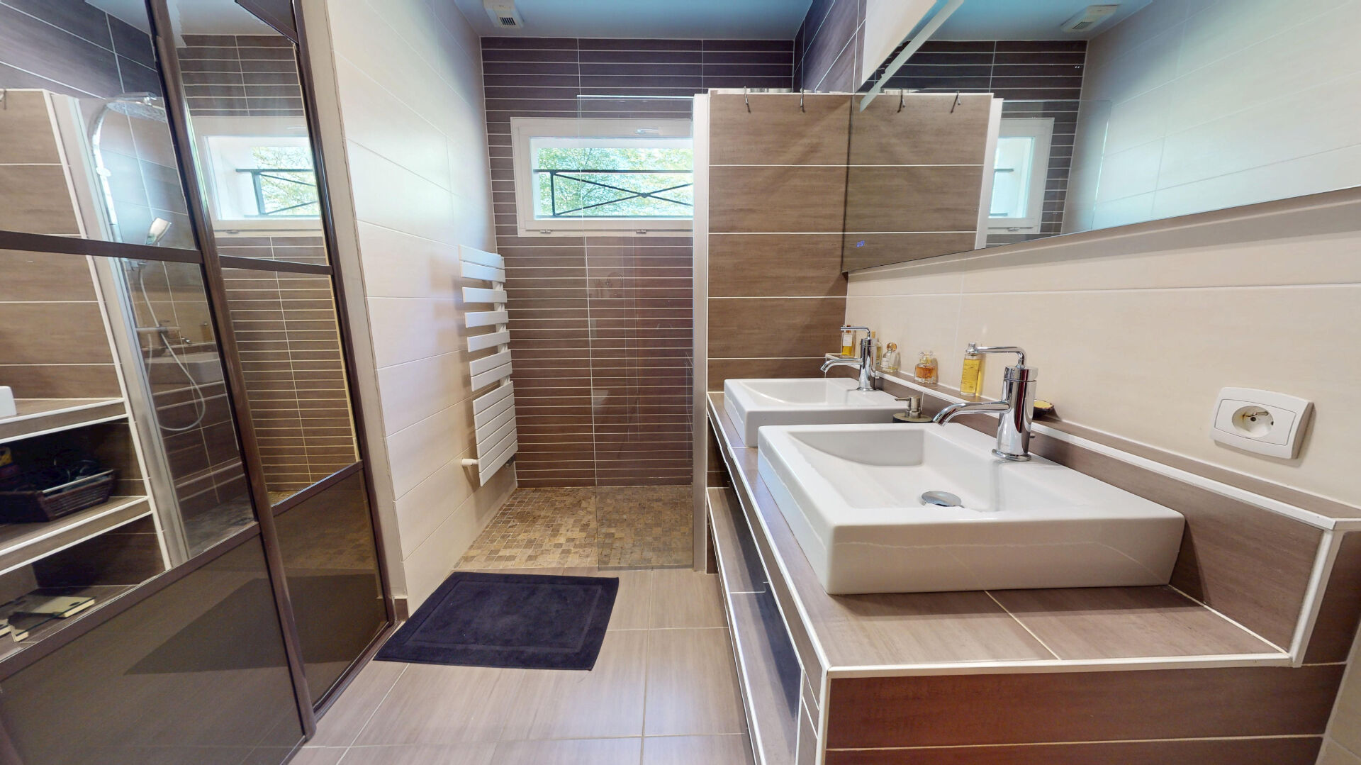 Sur un terrain paysagé de 1 400 m², sans vis-à-vis, avec vue imprenable sur le bois, très au calme, cette propriété développe environ 230 m² habitables répartis sur deux niveaux, alliant élégance contemporaine et prestations haut de gamme.