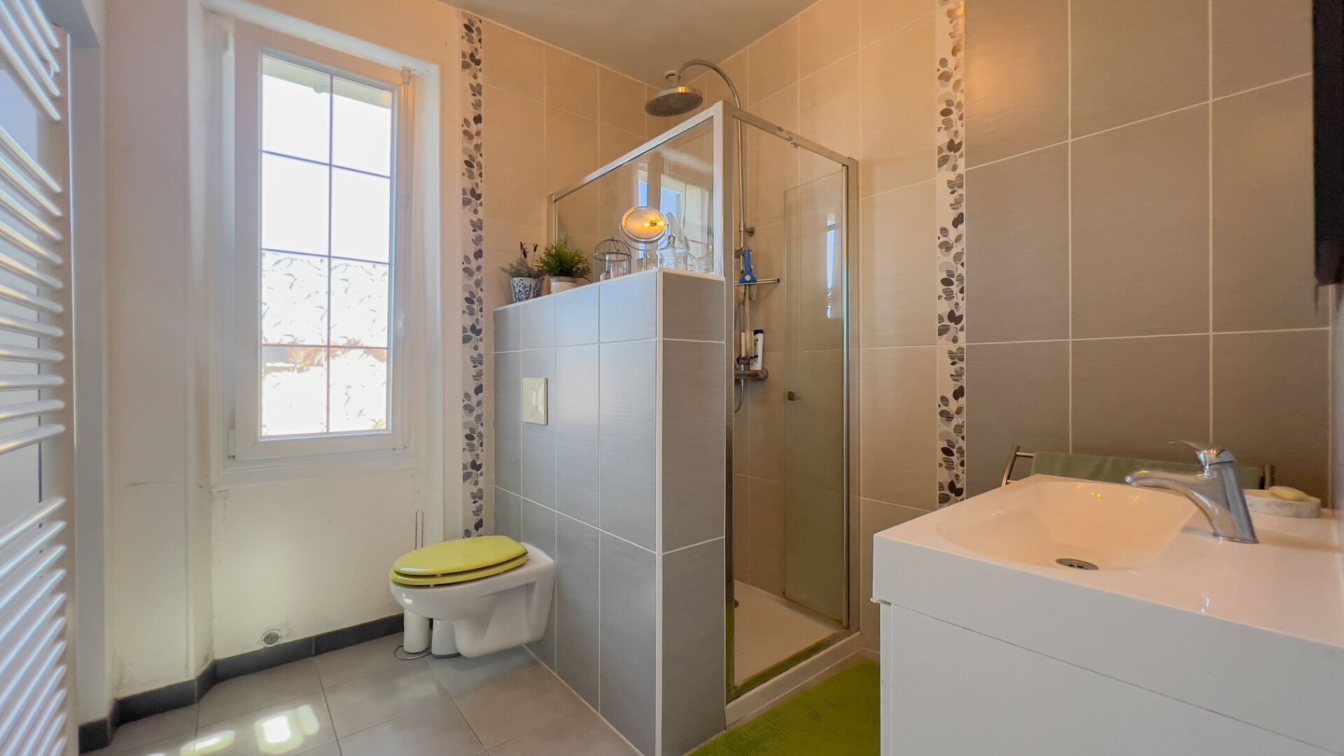 Une bâtisse avec beaucoup de cachet se cache sur ce terrain arboré de 525 m2. À l'abri des regards indiscrets, vous découvrirez un hall d'entrée avec ces carreaux de ciments desservant un très bel espace de vie de 38 m2 avec un bow window inondant le séjour de lumière, une cuisine bien agencée donnant accès à une véranda dans un cocon de verdure, une salle de bains et un wc également au rez-de-chaussée. Sur deux niveaux, 4 chambres dont une avec balcon et une très jolie vue, salle d'eau, wc, et une bibliothèque cachée.