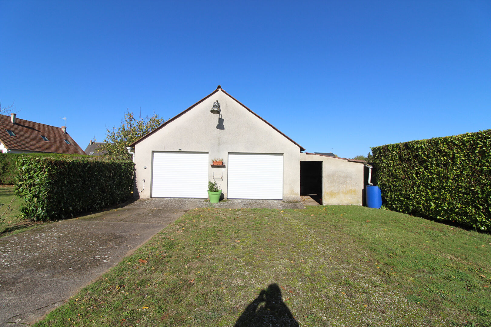 Garage double indépendant avec cave et pièce de jeu en sous-sol. Appentis attenant.