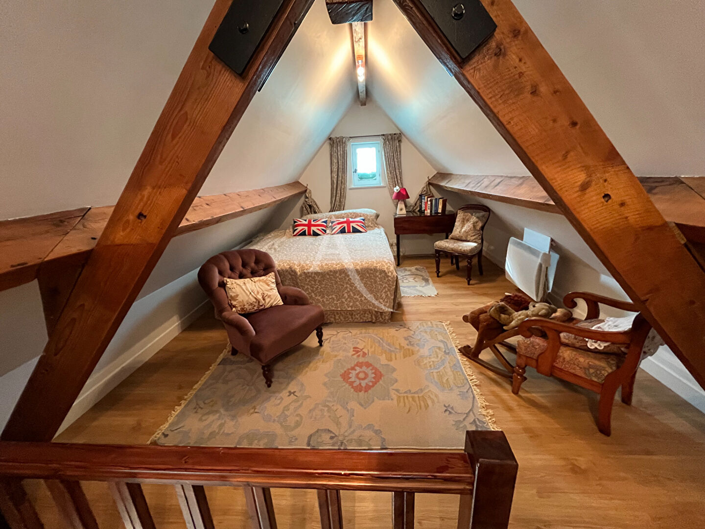 Coup de coeur assuré pour cette maison atypique unique avec ses beaux volumes, cuisine a/e, séjour-salon, deux suites parentales, une 3e chambre au 2e niveau donnant sur terrasse. Une belle dépendance pour exposition de peinture ou tout autre besoin, 2 caves et un petit bois