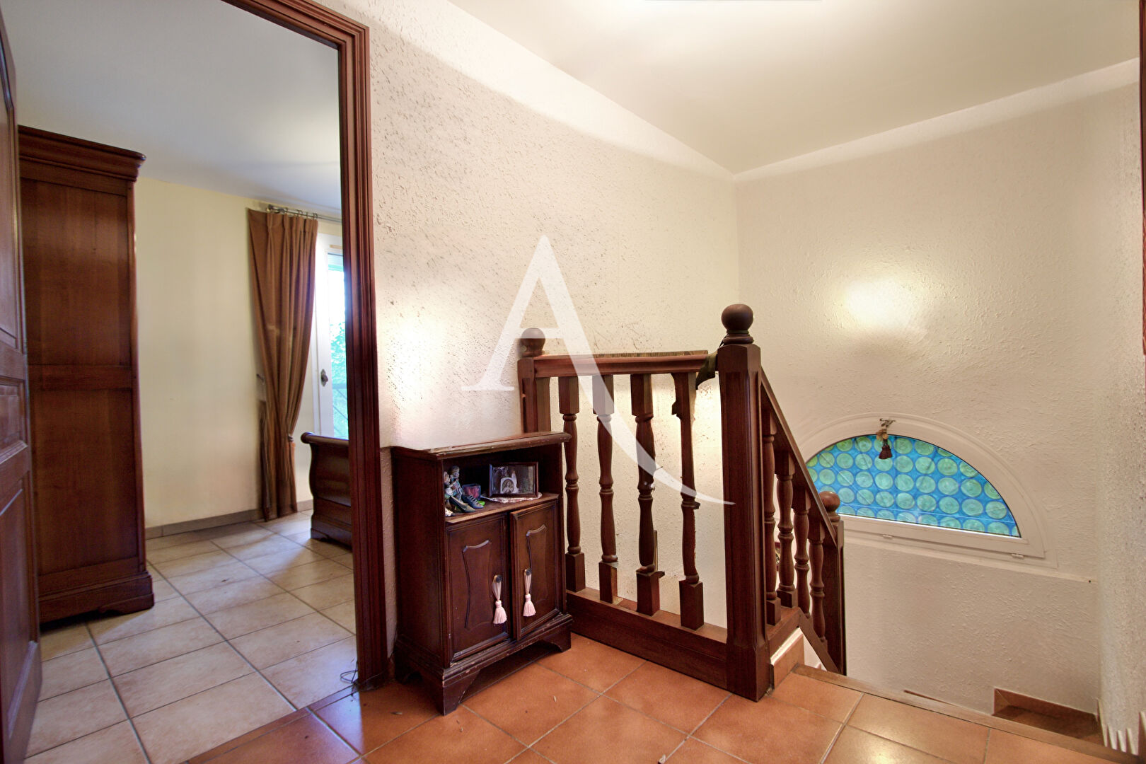 Une terrasse fermée, actuellement aménagée en espace-bureau, prolonge idéalement cette pièce.