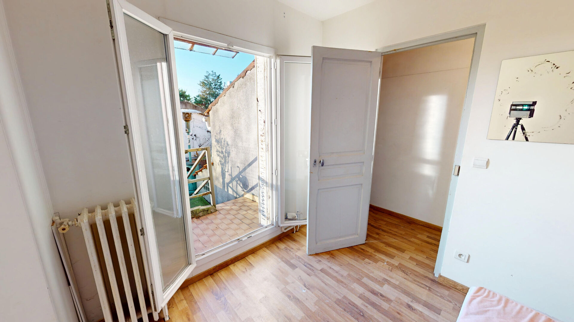Située à 12 minutes à pied du métro Mairie de Montreuil secteur Signac-Mûrs à Pêches, dans un environnement résidentiel calme et familial, nous vous proposons une maison de type 3 pièces 2 chambres d'une surface de 60m2. Dans le pur style années 30 avec façade en briquette, cette maison comprend au rez-de-chaussée une entrée, un séjour, une cuisine, salle de bain + WC. À l'étage vous retrouvez deux grandes chambres lumineuses. Au 1er étage également, attenante à l'une des chambres, vous profiterez d'une terrasse de 8m2 exposée Ouest avec vue dégagée sur le toits du quartier. La maison nécessite des travaux de rénovation importants (sols, murs, peintures enduits, cuisine et salle de bain à refaire, rénovation complète de la terrasse + contrôle étanchéité...). Chauffage et eau chaude individuels au gaz - taxe foncière 1144 € - double vitrage PVC sur tous les ouvrants - excellent DPE en D - exposition Est Ouest. La maison dispose d'une cave saine en sous-sol accessible depuis la cuisine.
