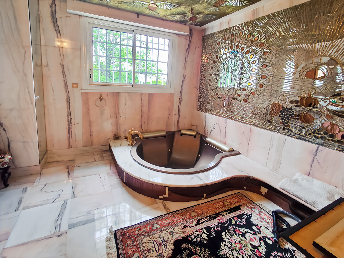 Dès l'entrée, le charme opère avec un hall en marbre qui donne le ton des prestations de qualité que l'on retrouve dans toute la maison. Vous découvrirez une vaste pièce de vie baignée de lumière, composée d'un double séjour agrémenté d'une cheminée, parfait pour partager des moments conviviaux en famille. Une seconde entrée mène à un élégant espace salon et bureau, idéal pour les moments de détente. Le bien vous offre également une cuisine aménagée lumineuse avec son bow-windows, un salle de bain avec jacuzzi et un WC indépendant.
