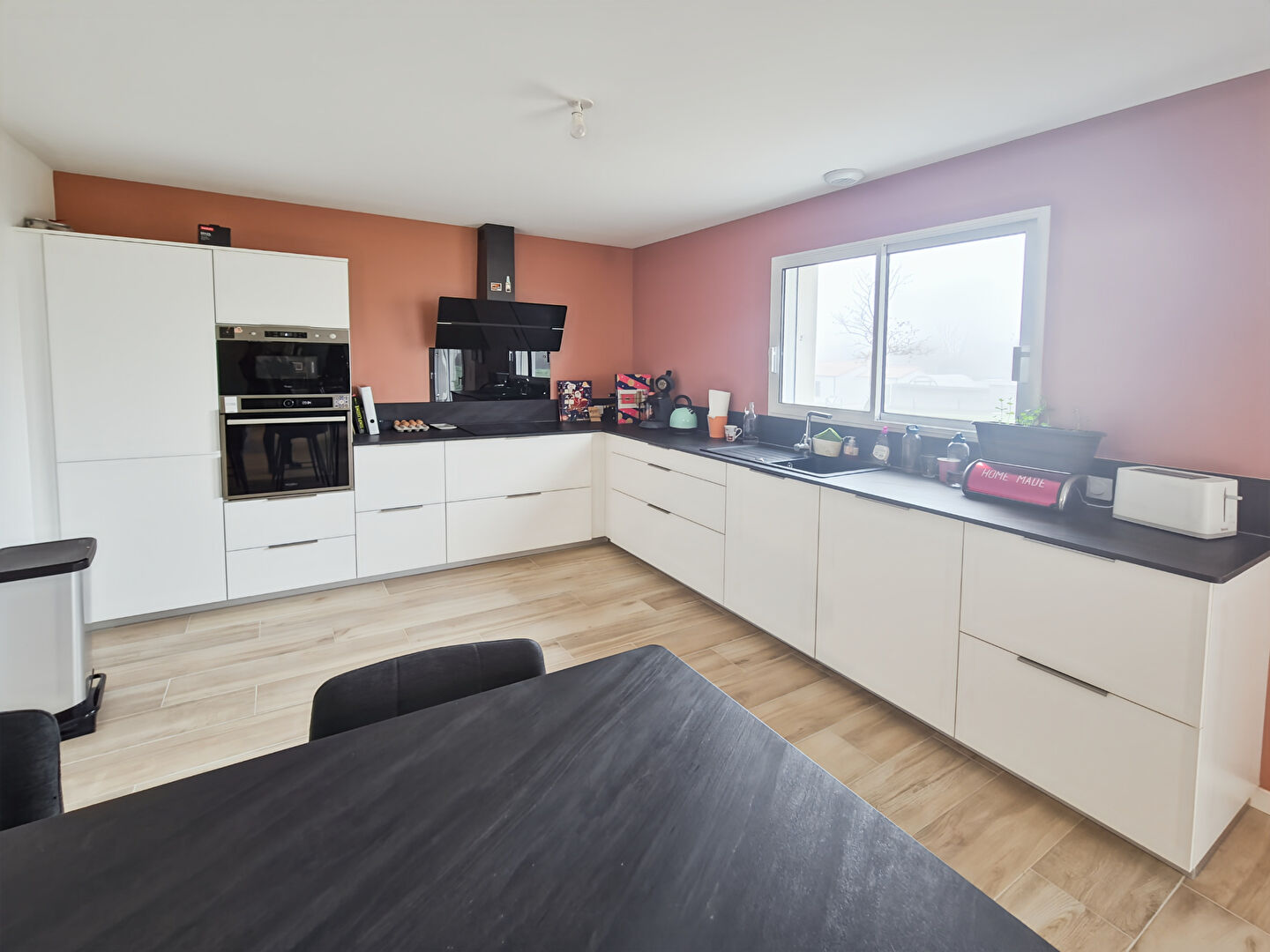 Équipée d'un chauffage au sol par aérothermie, la maison offre un confort optimal.