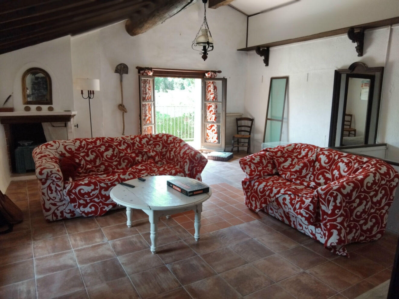 Elle se compose au RdC d'un salon avec cheminée/salle à manger/cuisine de plus de 50 m², un WC, une arrière cuisine et buanderie. A l'étage, un 2eme salon de 30 m², 3 chambres et la salle de bain avec WC.