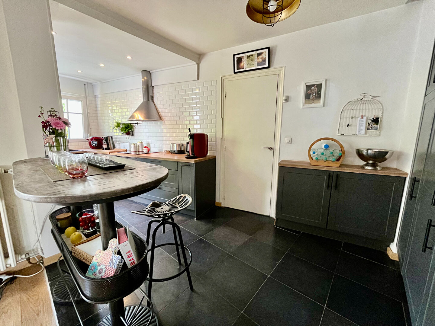 Alliant le cachet de l'ancien et le confort moderne, elle vous accueille dès l'entrée dans une ambiance chaleureuse. Le rez-de-chaussée se compose d'un séjour d'environ 34 m², baigné de lumière et ouvert sur le jardin sans vis-à-vis, ainsi que d'une cuisine ouverte et conviviale.