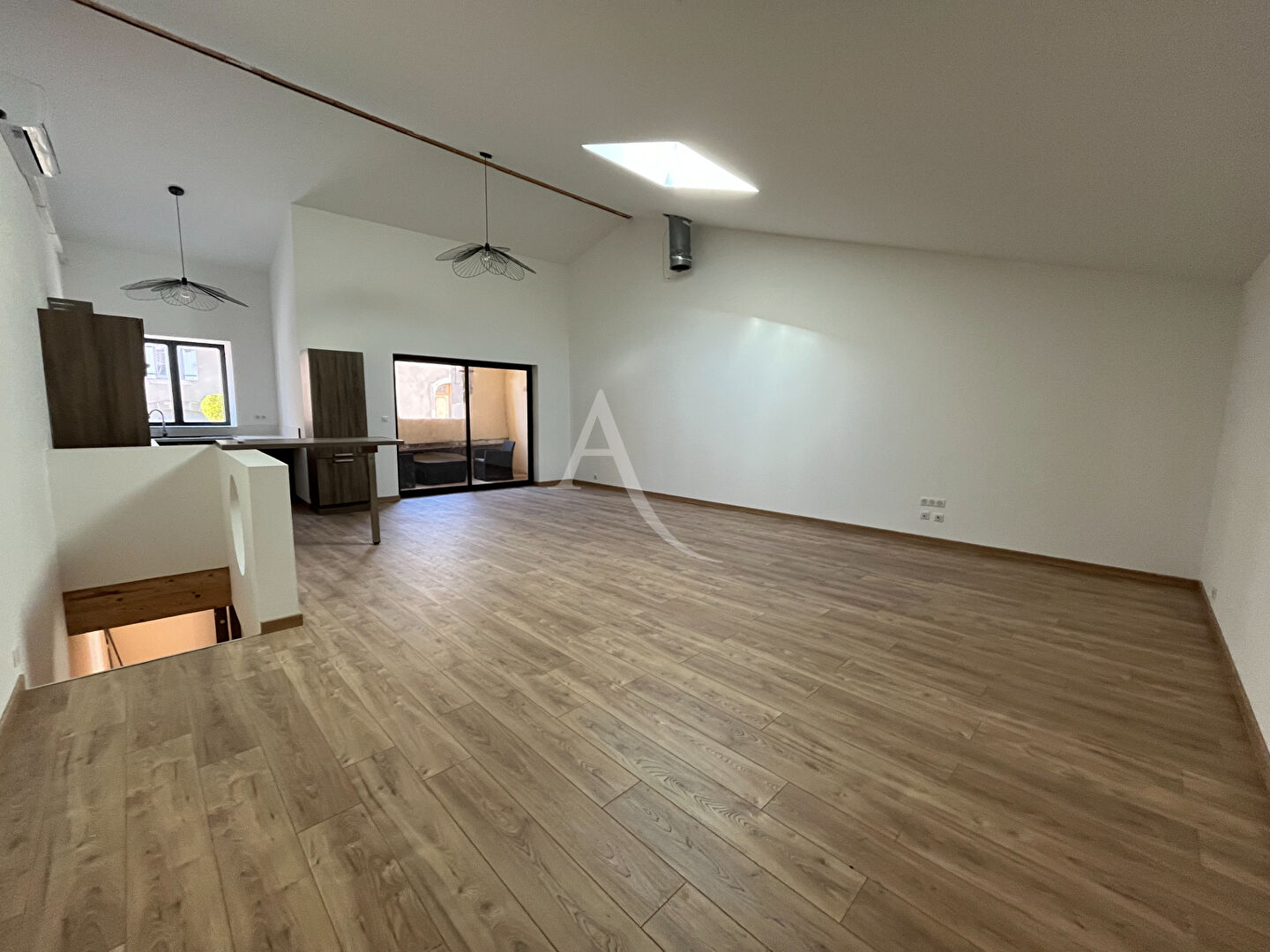 A l'étage une vaste pièce de vie avec plafond cathédrale ouverte sur une cuisine américaine avec accès direct à une terrasse couverte permettant de profiter de la douceur de vivre méditerranéenne.
