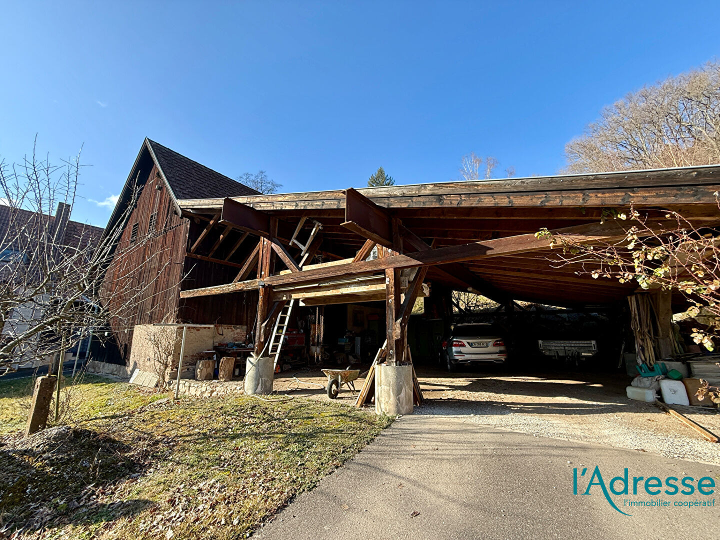 Compléments : grange offrant la possibilité d'aménagement avec de belles poutres apparentes, atelier et espace cuisine extérieur.