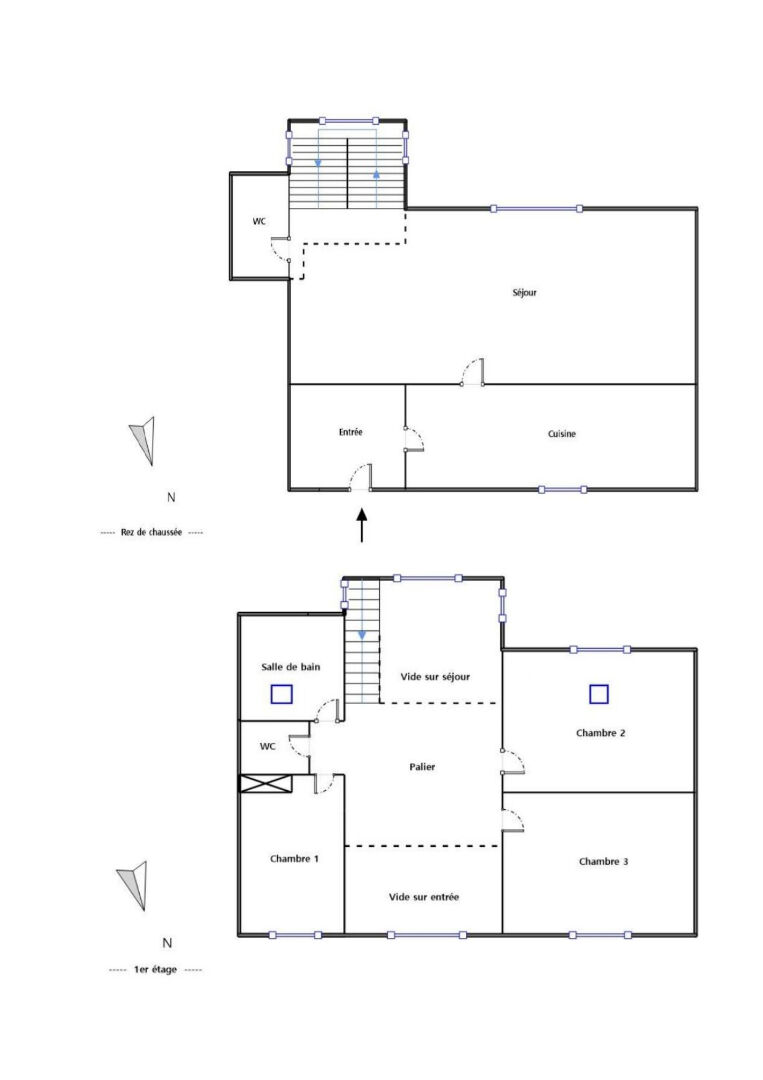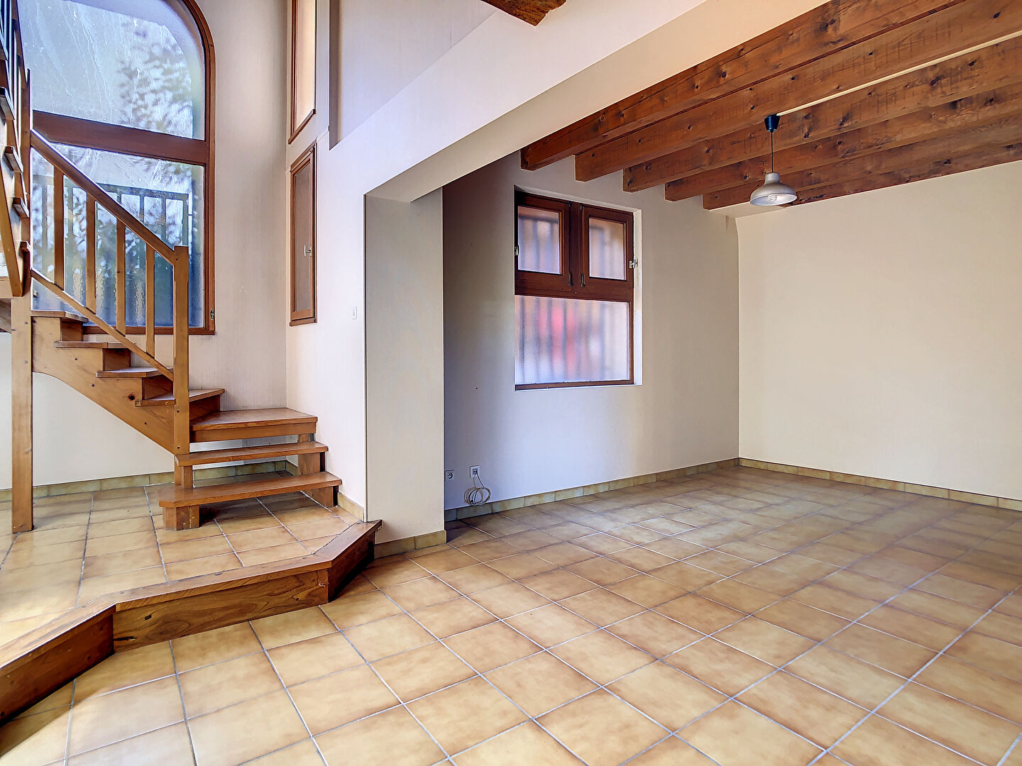 Composée de 2 niveaux d'environ 40 m² chacun, elle vous offre une entrée sur une belle pièce de vie lumineuse avec son hauteur cathédrale, cuisine indépendante aménagée, W.C.