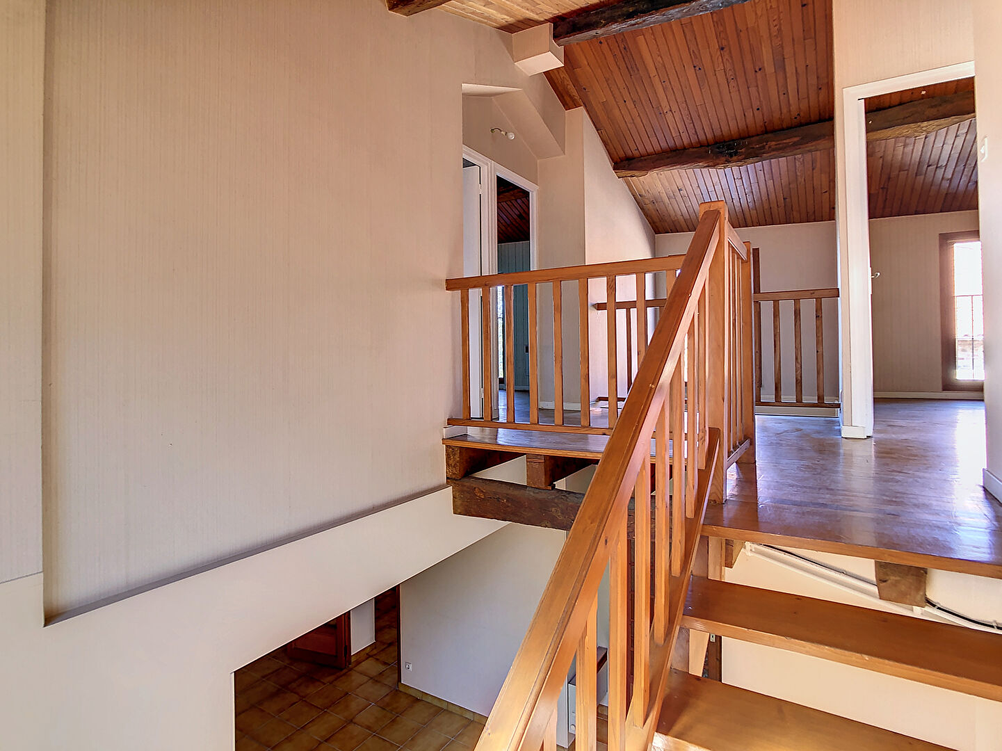 A l'étage, palier desservant 3 chambres dont deux d'environ 12 m², une salle de bains, W.C séparés.