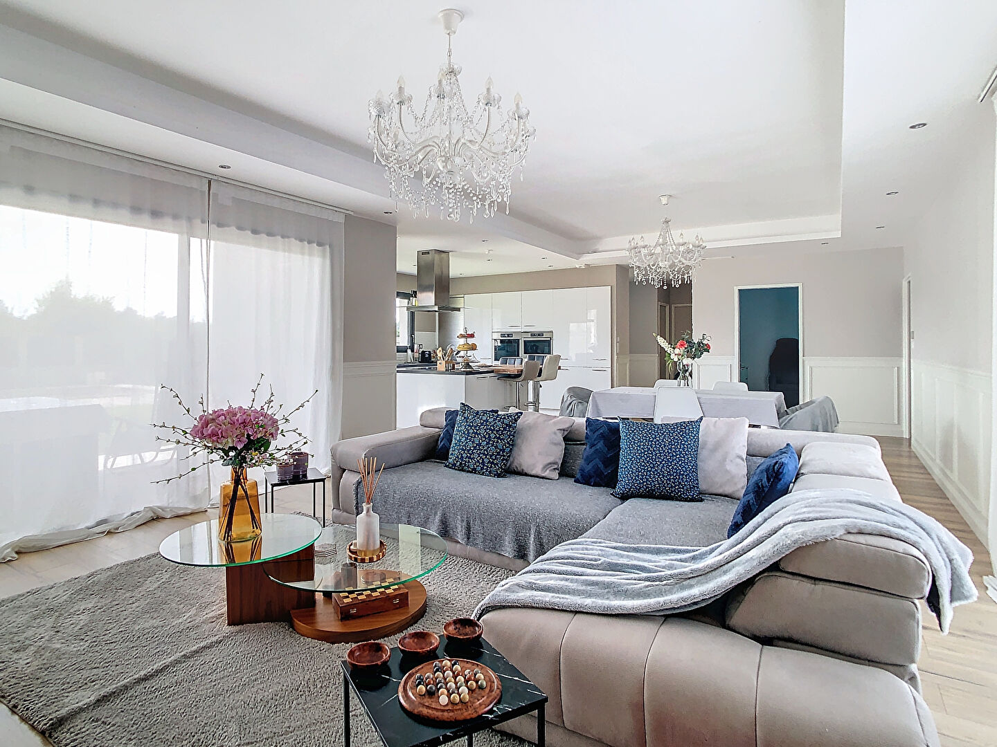 Elle se compose d'un hall d'entrée donnant accès à une vaste pièce de vie lumineuse de plus de 55 m² avec cuisine ouverte aménagée et équipée, couloir desservant 4 belles chambres dont une suite parentale d'environ 20 m², une grande salle de bains avec W.C, cellier/buanderie.