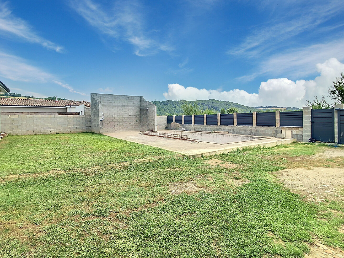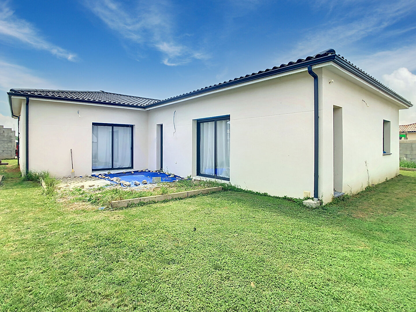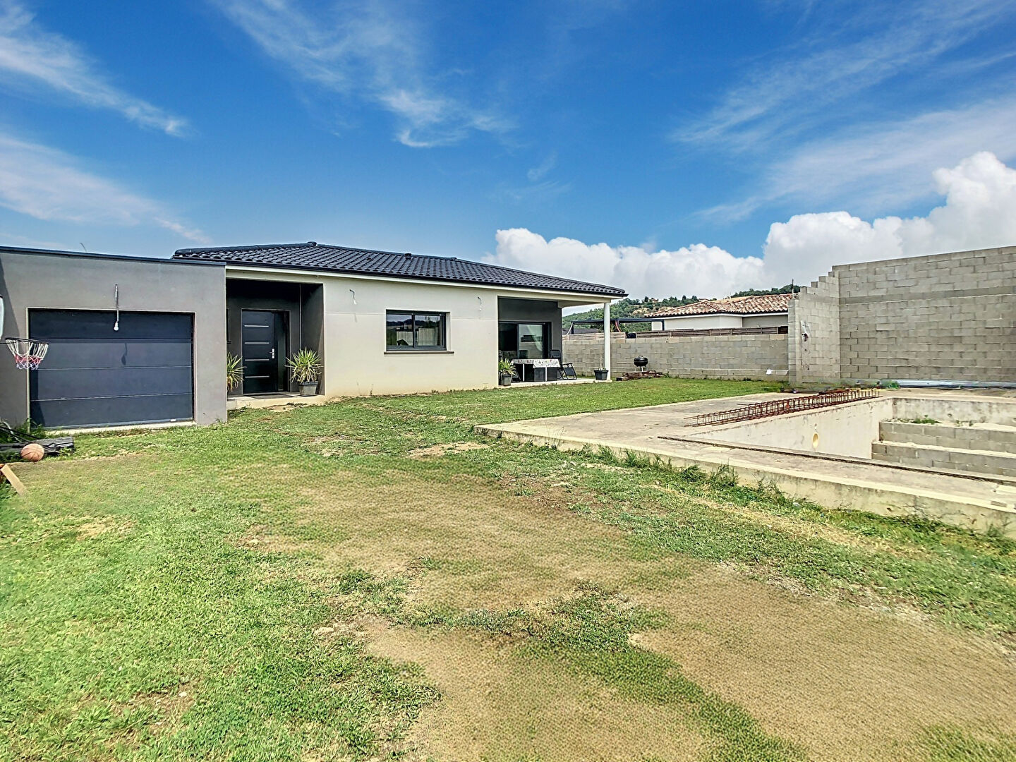Les extérieurs de cette maison restent à finir d'être aménagés, vous permettant de personnaliser les espaces selon vos envies. La piscine, prévue pour apporter une touche de luxe et de détente, n'est pas encore terminée, offrant ainsi l'opportunité de la concevoir à votre goût.