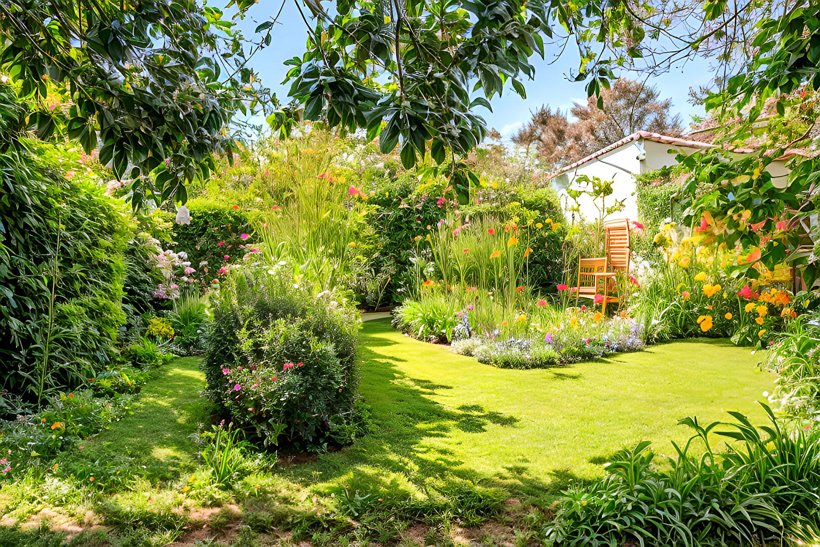 Une terrasse et un jardin entièrement clôturé.