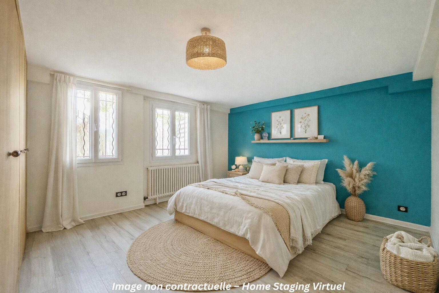 Rez-de-jardin : deux chambres, dont une pouvant faire office de bureau, une salle d'eau, un WC séparé ainsi qu'un espace buanderie.