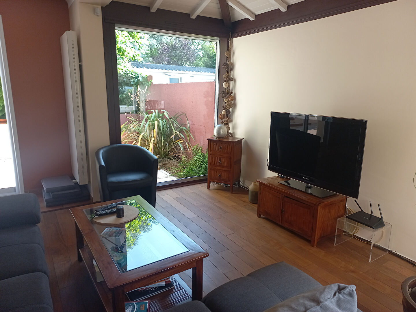 d'une grande pièce de vie avec son coin salon chaleureux et cosy, d'une cuisine aménagée et entièrement équipée, de deux chambres, d'une salle de bains et d'un WC indépendant.