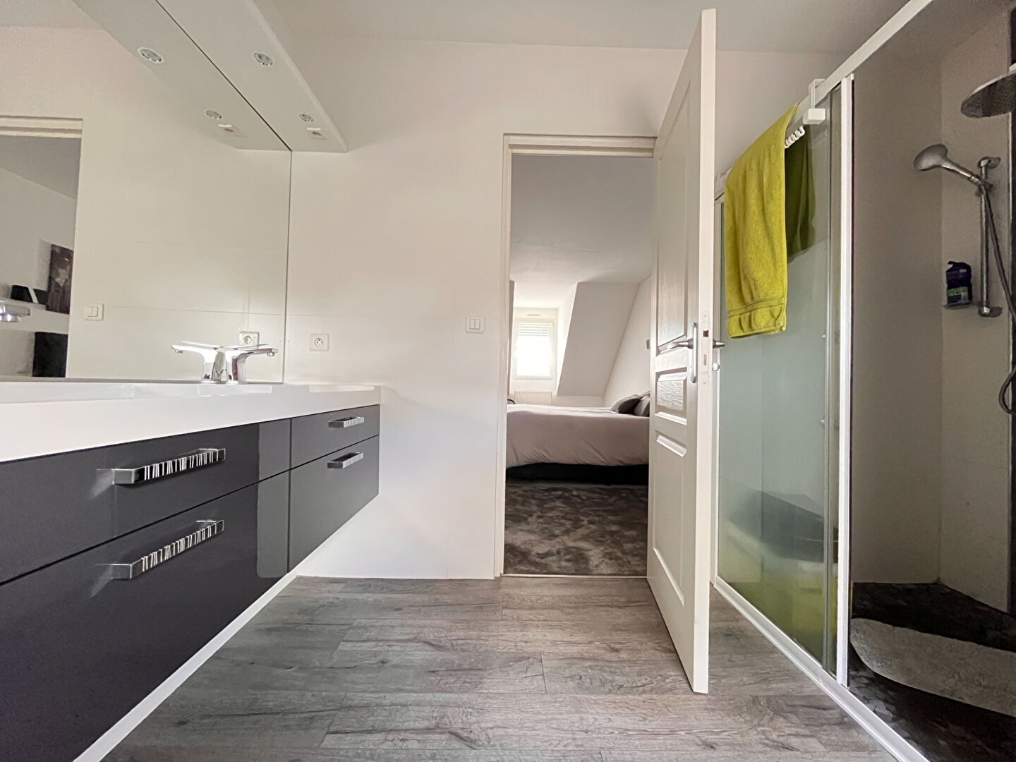 À l'étage, un large palier dessert quatre belles chambres aux volumes confortables, dont une suite parentale de pres de 20 m² au sol avec sa salle d'eau privative. Une seconde salle d'eau ainsi qu'une pièce dédiée au dressing ou au rangement complètent cet espace nuit.