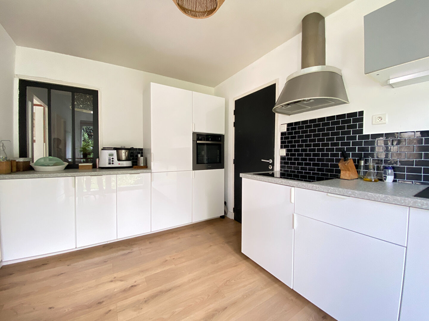 Le rez-de-chaussée s'ouvre sur une vaste pièce de vie de plus de 50 m², chauffée par un poêle à bois qui lui confère une atmosphère chaleureuse. Vous y trouverez une cuisine ouverte, aménagée et équipée, idéale pour partager des moments conviviaux en famille. L'ensemble bénéficie d'un accès direct à un grand jardin clos, sans vis-à-vis, parfait pour profiter des beaux jours en toute intimité.