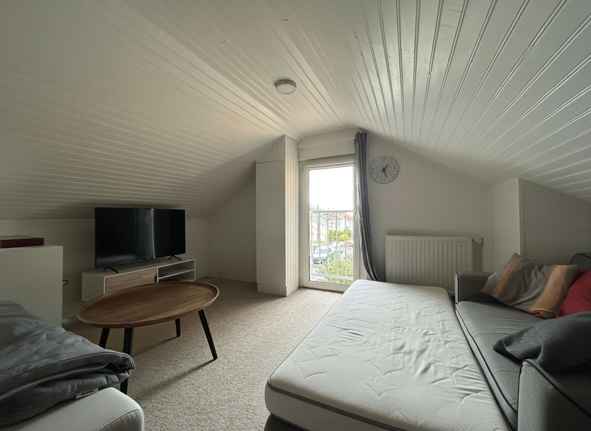 A l'étage, vous trouverez une mezzanine accueillant un espace télé, une chambre /bureau avec point d'eau.