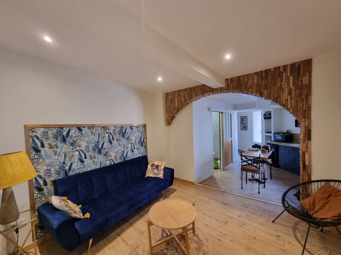 Le premier étage accueille un appartement T2 lumineux et agréable à vivre, composé d'une cuisine équipée ouverte sur la pièce principale, d'une chambre confortable et d'une salle d'eau moderne.