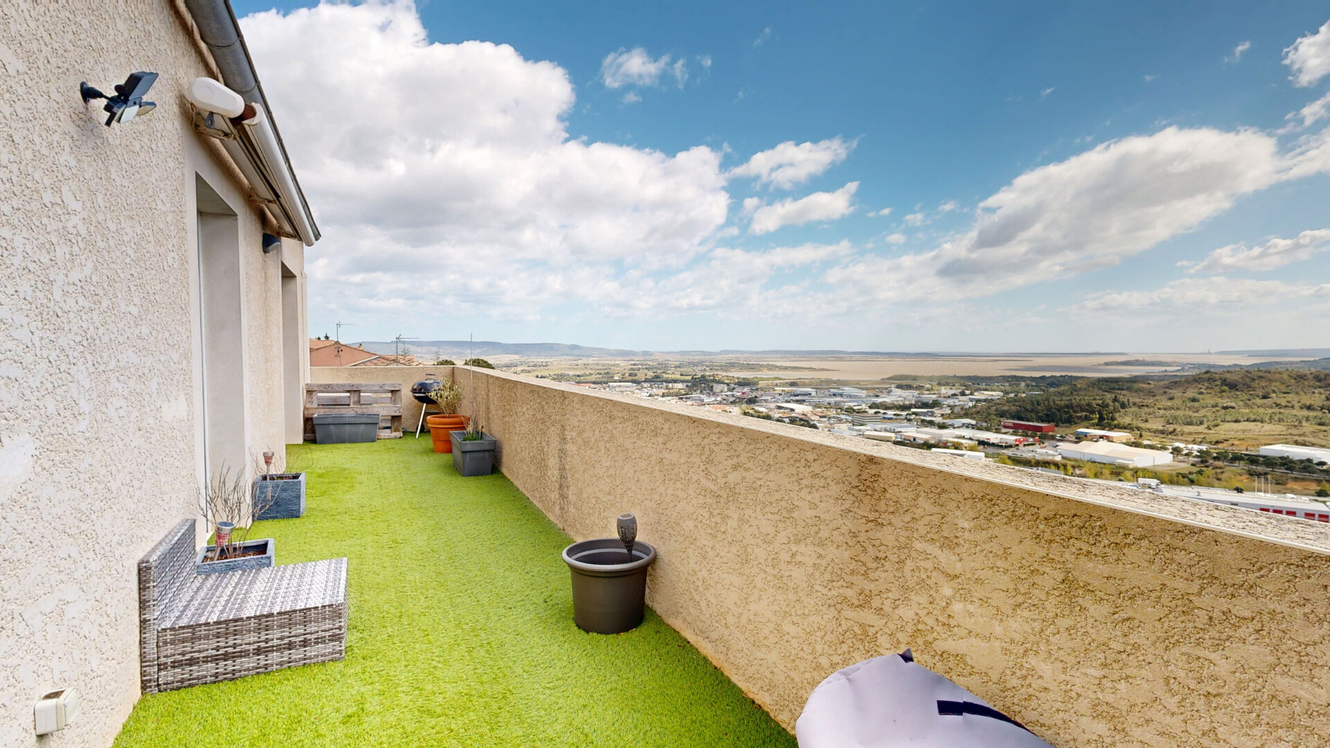 Nichée dans un quartier résidentiel paisible des Hauts de Narbonne, elle bénéficie d'une vue spectaculaire sur la ville et les étangs de la Nautique.
