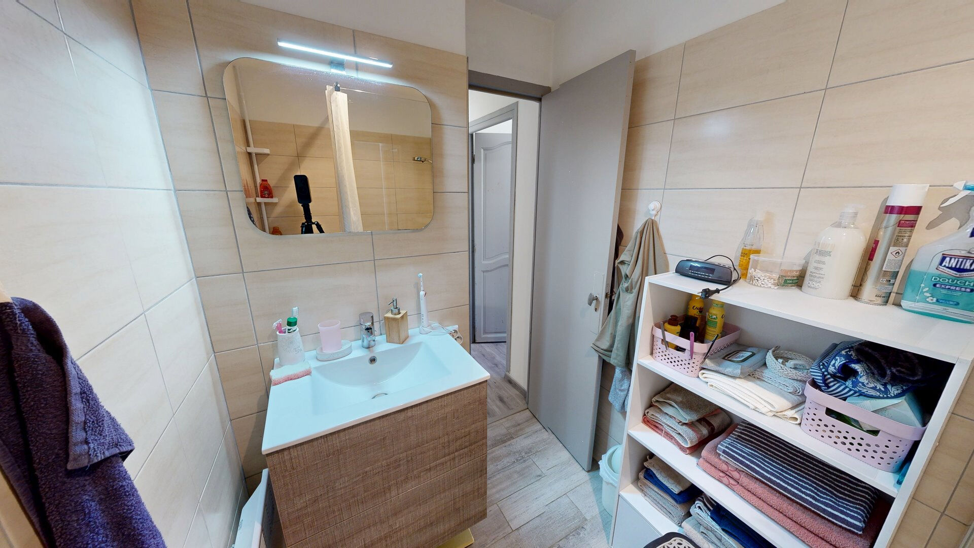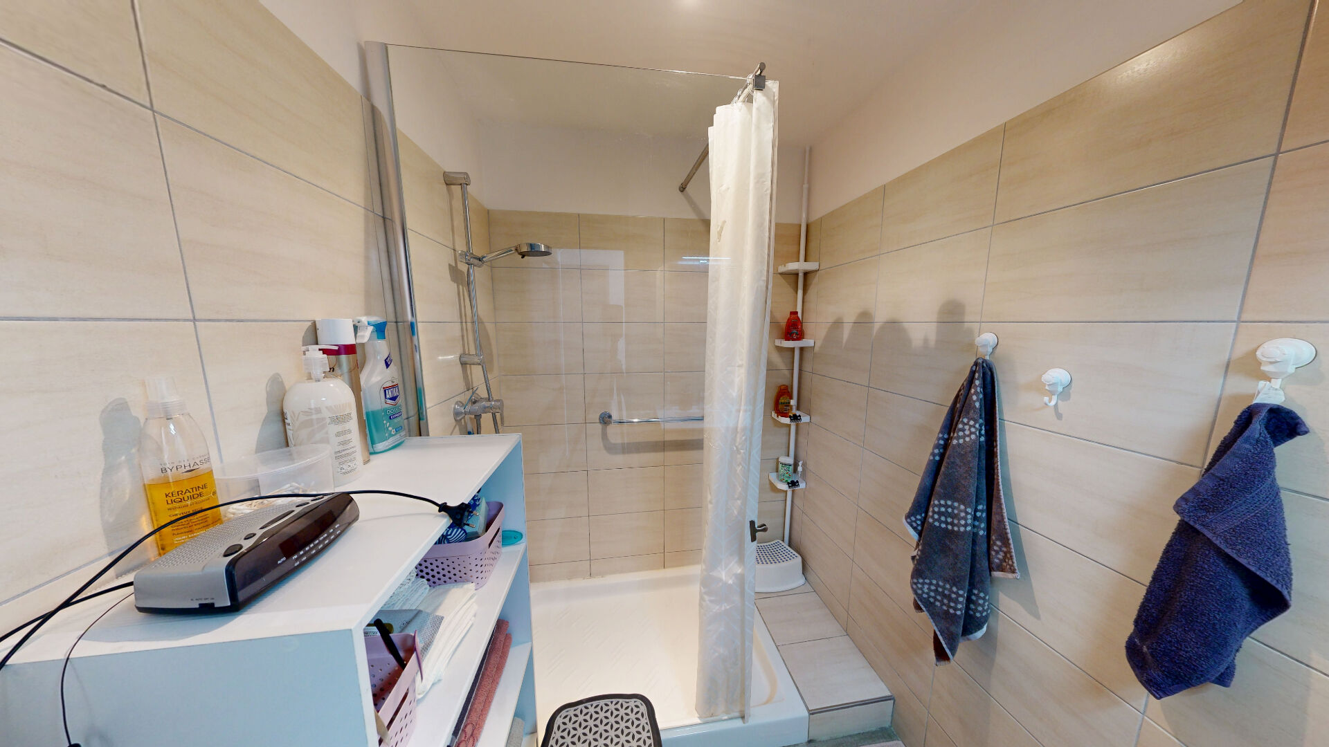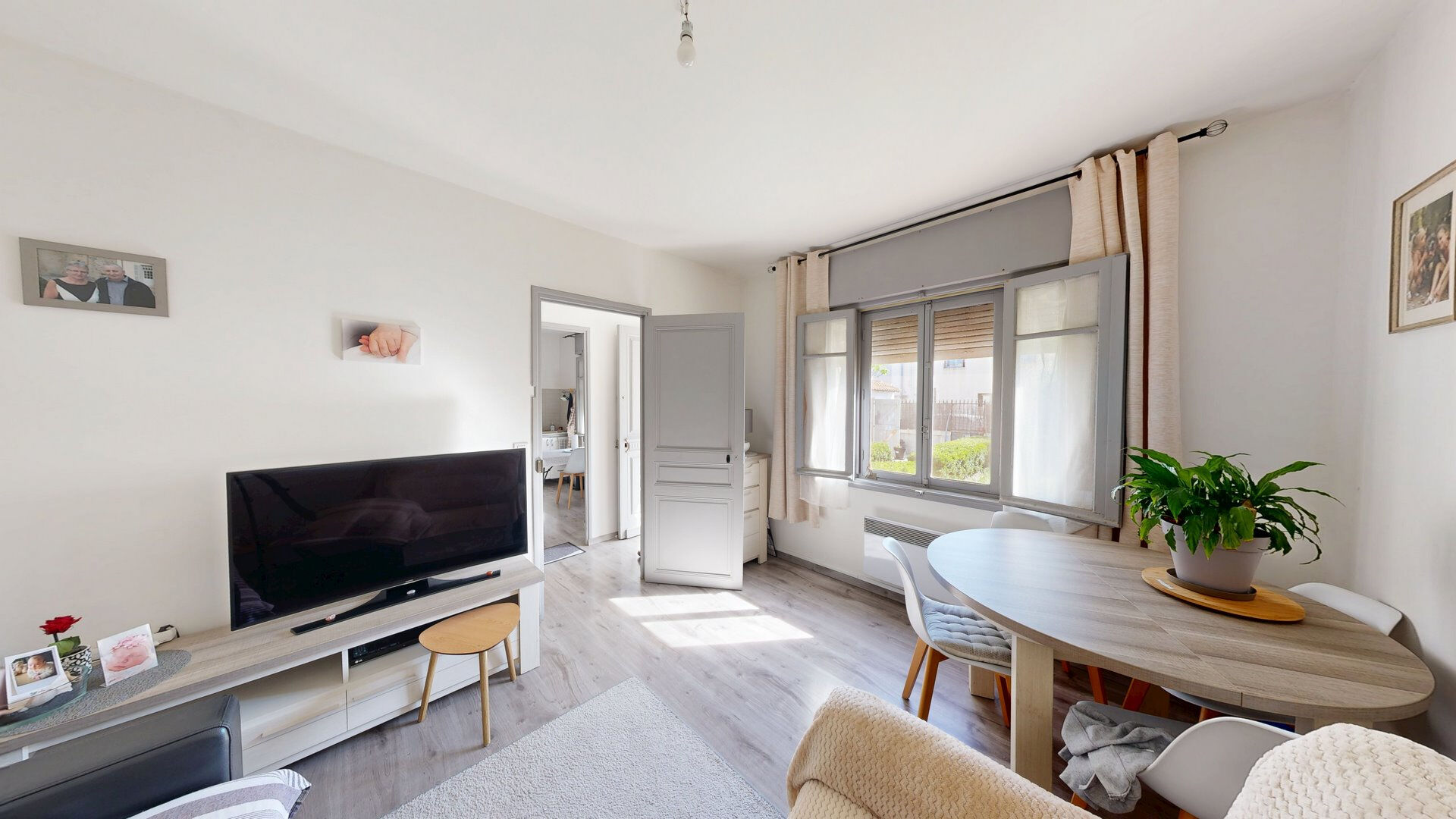Dès l'entrée, vous accédez à un salon lumineux, ainsi qu'à une cuisine indépendante de 10,84 m². Un couloir dessert ensuite deux chambres confortables (9,84 m² avec placard et 10,94 m²), un espace dressing/débarras, un WC indépendant et une salle d'eau entièrement rénovée.